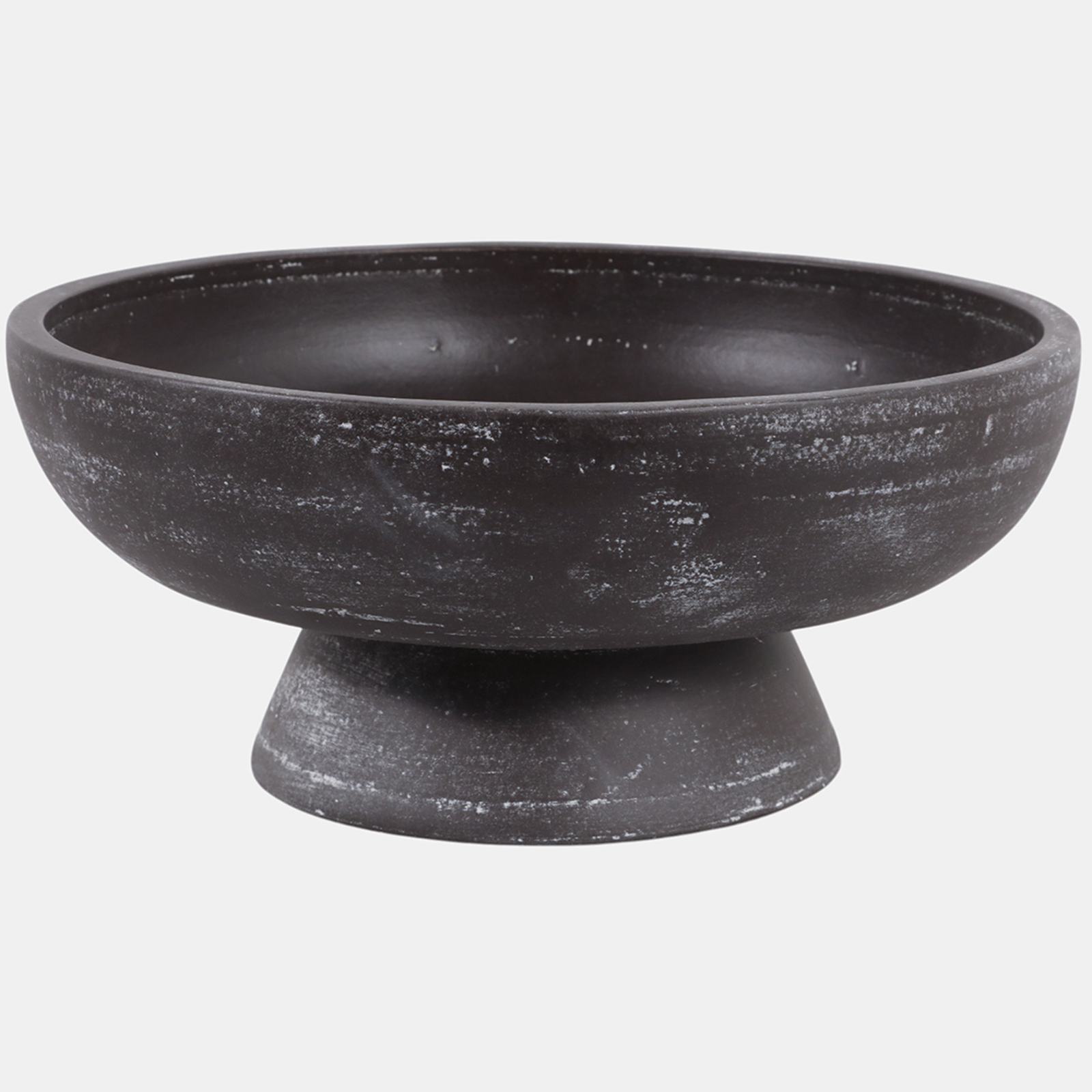 This brown terracotta pedestal bowl, crafted in India, showcases earthy pottery texture and a timeless silhouette that adds warm, artisanal character to any display.