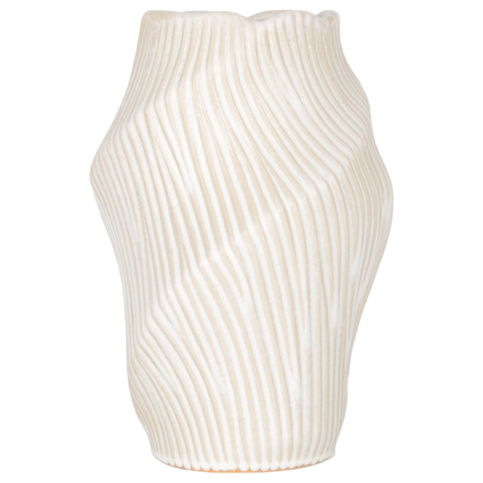 These ceramic vases in cream finishes offer a sleek, modern look with sculptural character, and are available in two sizes for versatile styling.