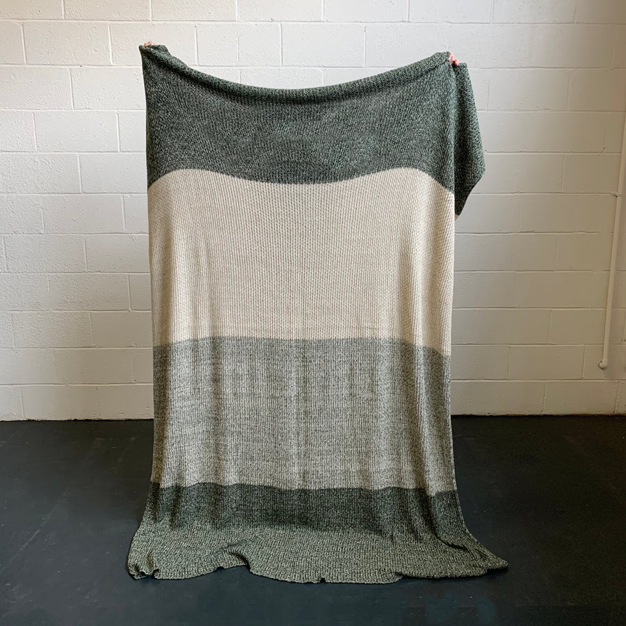 A traditional 'L-shaped' sectional sofa in blue performance fabric, arranged in a showroom setting with a wooden coffee table in front.