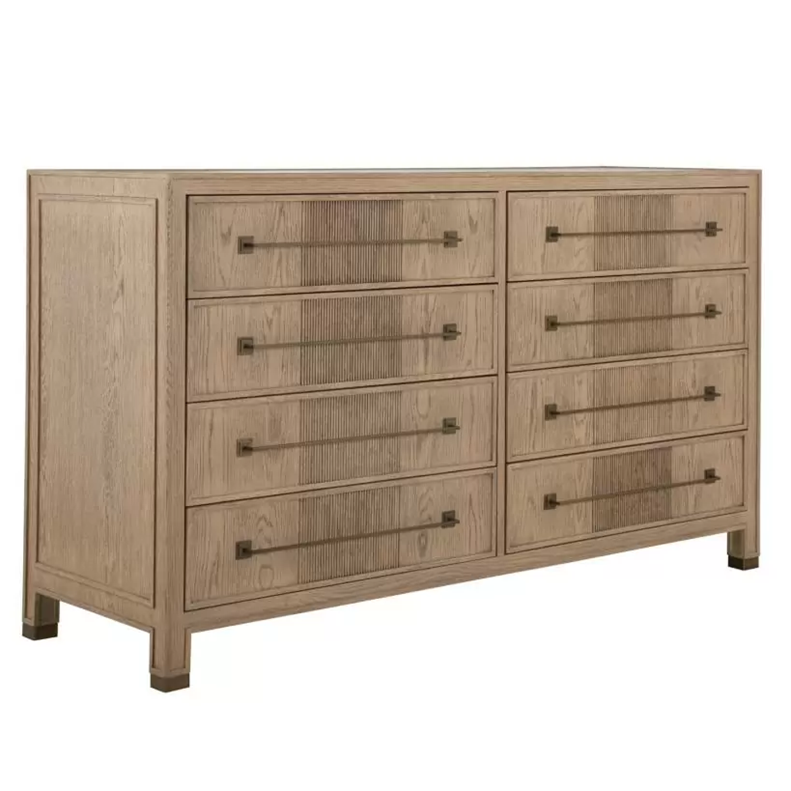 The Marc Dresser is a masterful blend of modern functionality and timeless elegance, designed to elevate any bedroom decor. Crafted from high-quality oak wood and oak veneer, with a cerused natural finish, it showcases the beauty of the wood grain while offering a warm, inviting aesthetic.