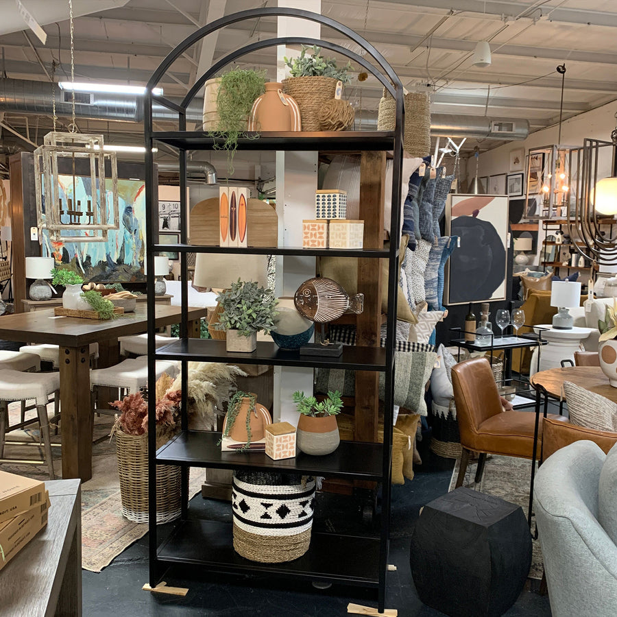 Sleek, simple and beautifully on-trend. Black-finished iron forms an airy open frame, with an arched top for modernity.