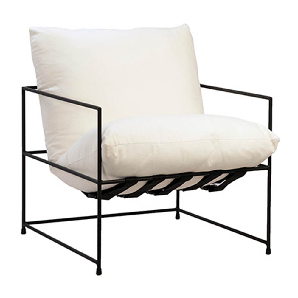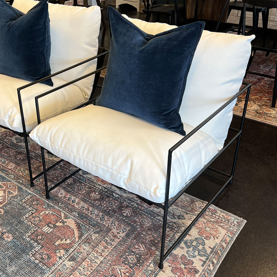 Sit down and relax in the ultra plush Isley chair wrapped in a crisp white fabric.