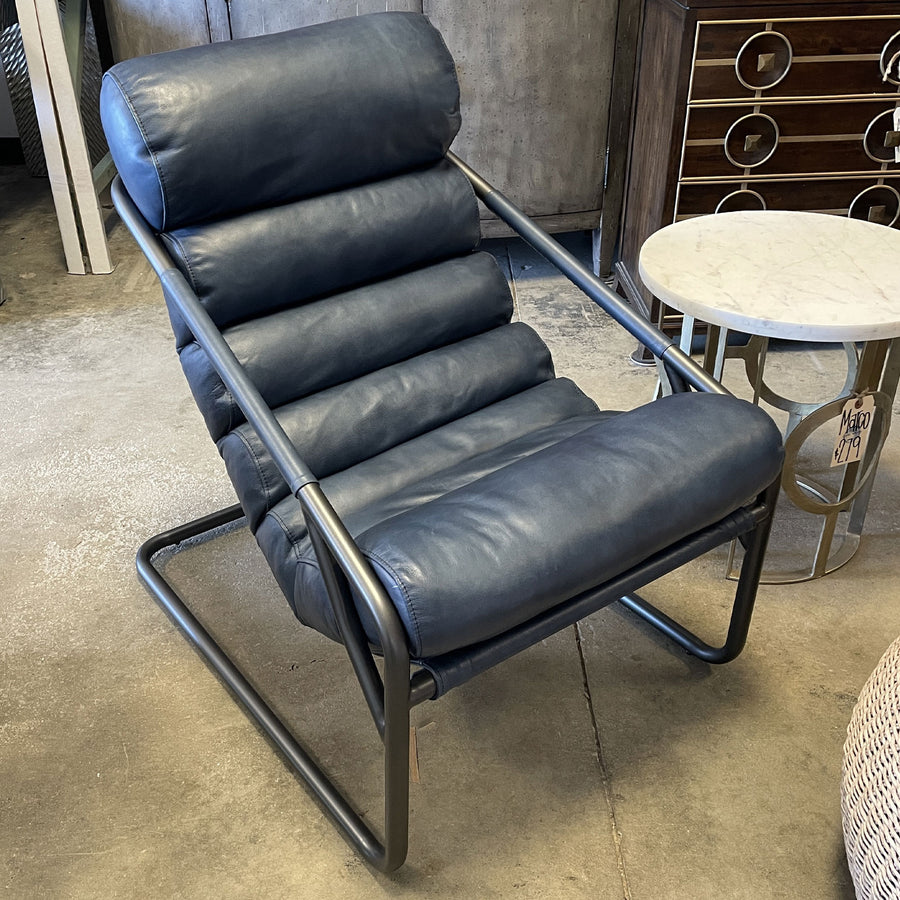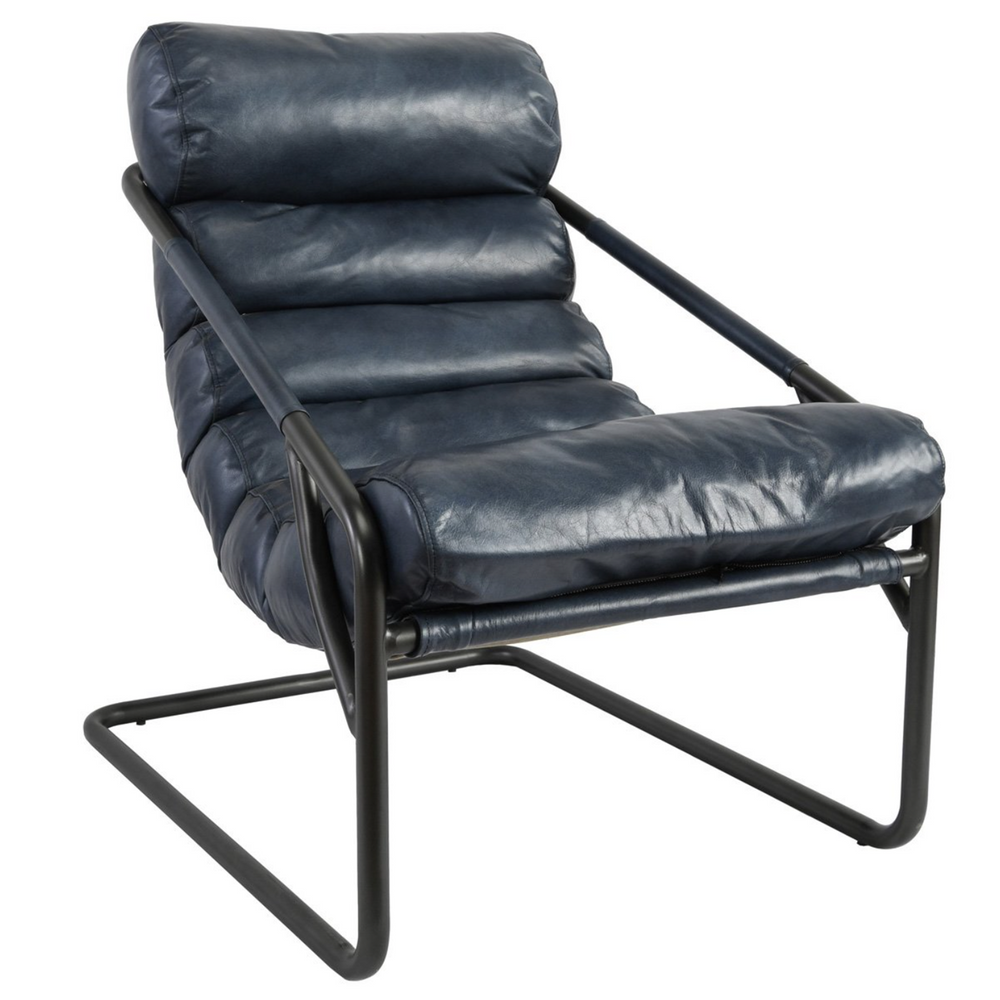 Relish the supple feel and exceptional durability of top grain leather with this chic chair featuring a black iron frame, channel back, and richly dyed leather upholstery!