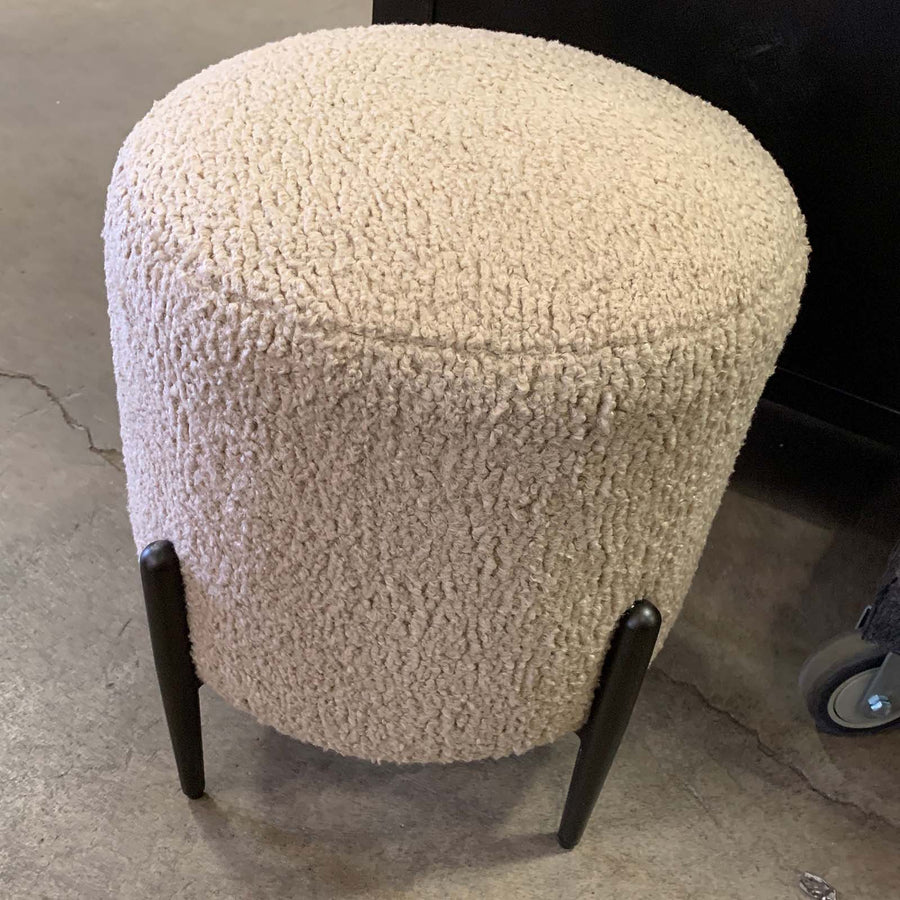 This plush ottoman is covered in a luxurious latte faux shearling, suspended within dark bronze finished metal legs. Versatile and stylish, this piece can be used as a seat or footrest, grouped together or as a singular accent piece.