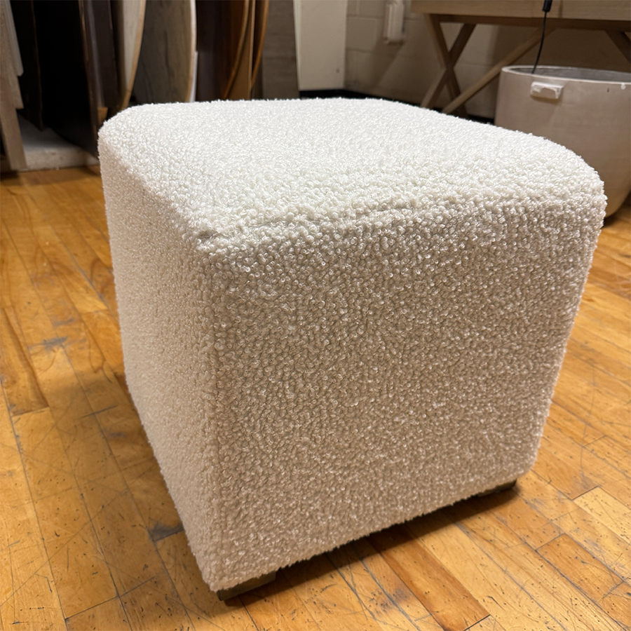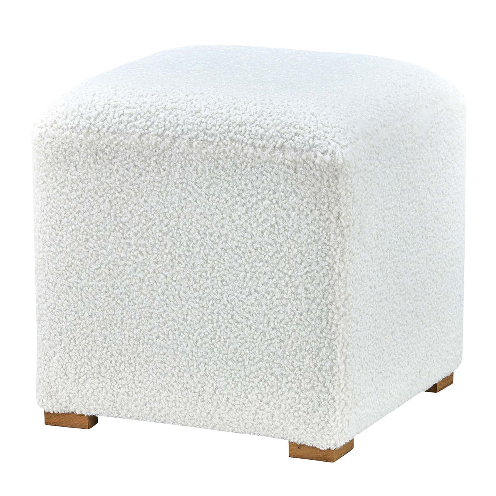 A luxurious addition to any space. Featuring soft white faux shearling fabric paired with elegant wood legs, this stool offers comfort and style in one chic package.