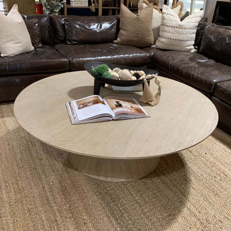 The cone base and rustic finish of the Monroe coffee table is a unique edition to any style living room!