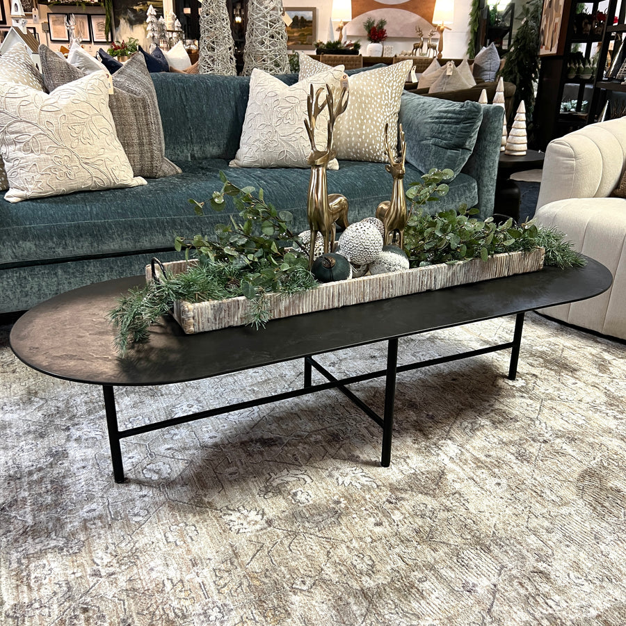 Crafted from micro cement and a four-legged metal base in a sleek black and textured plaster cement finish, the Neve Coffee Table would look perfect in any living space!
