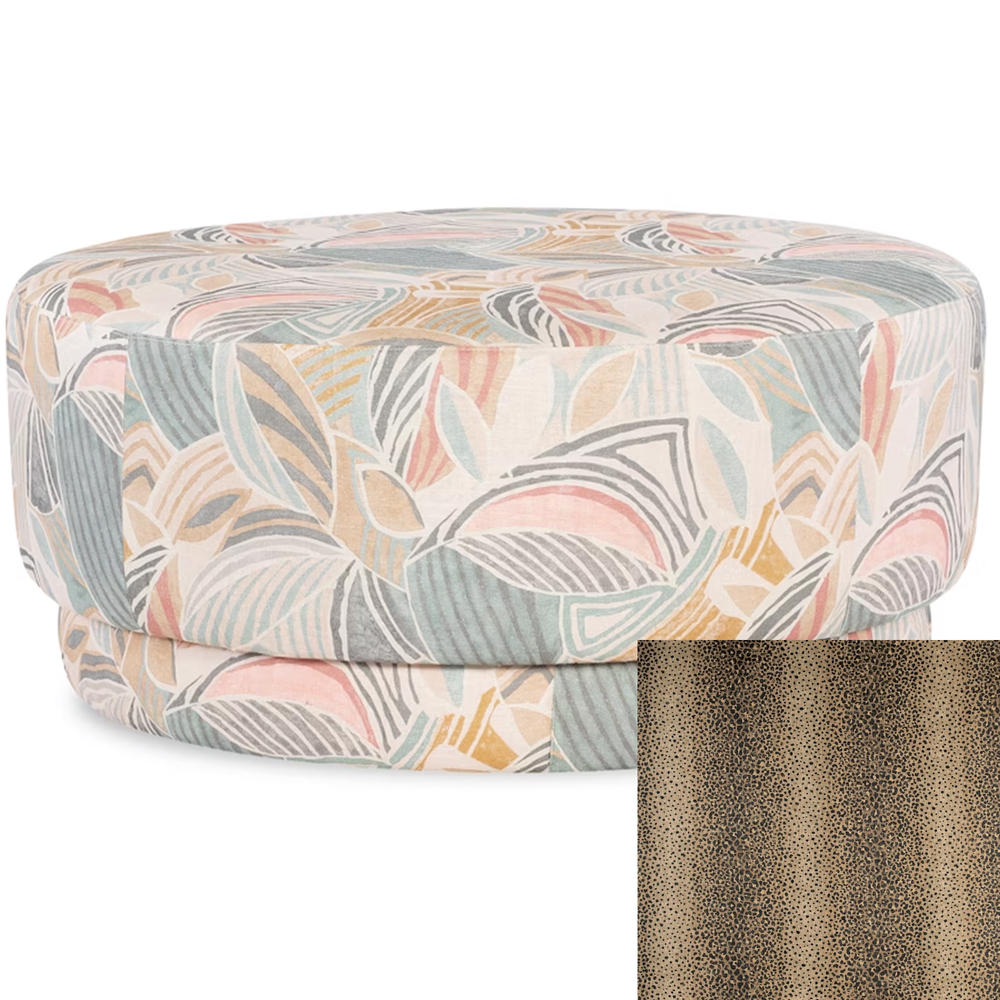 This round ottoman offers ample size and stunning style, serving as a statement piece for living rooms or lounge spaces.