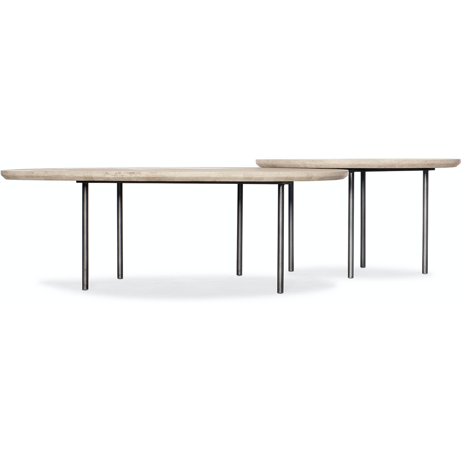 Solid cream travertine stone tops carbon steel legs with the Risch nesting coffee table.