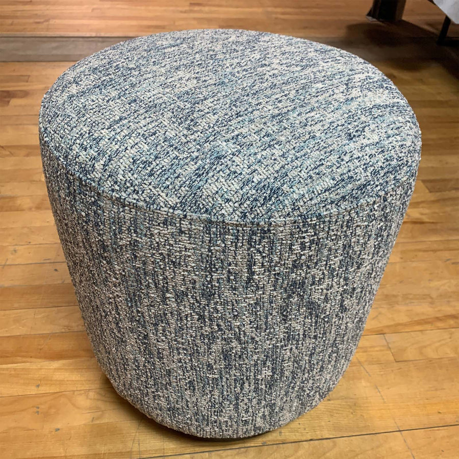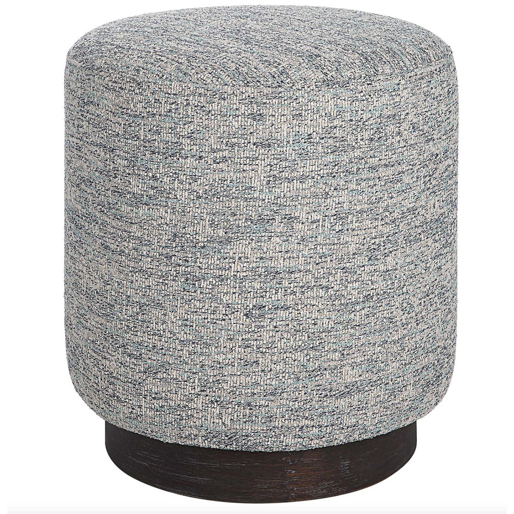 This plush ottoman is covered in a casual blue and white tweed fabric with a dark walnut stained oak base. Versatile and stylish, this piece can be used as a seat or footrest, grouped together or as a singular accent piece.