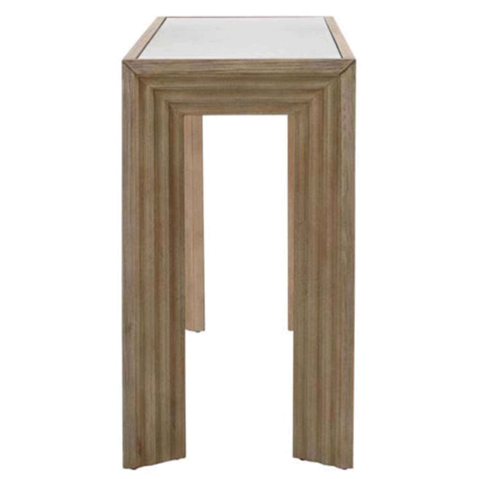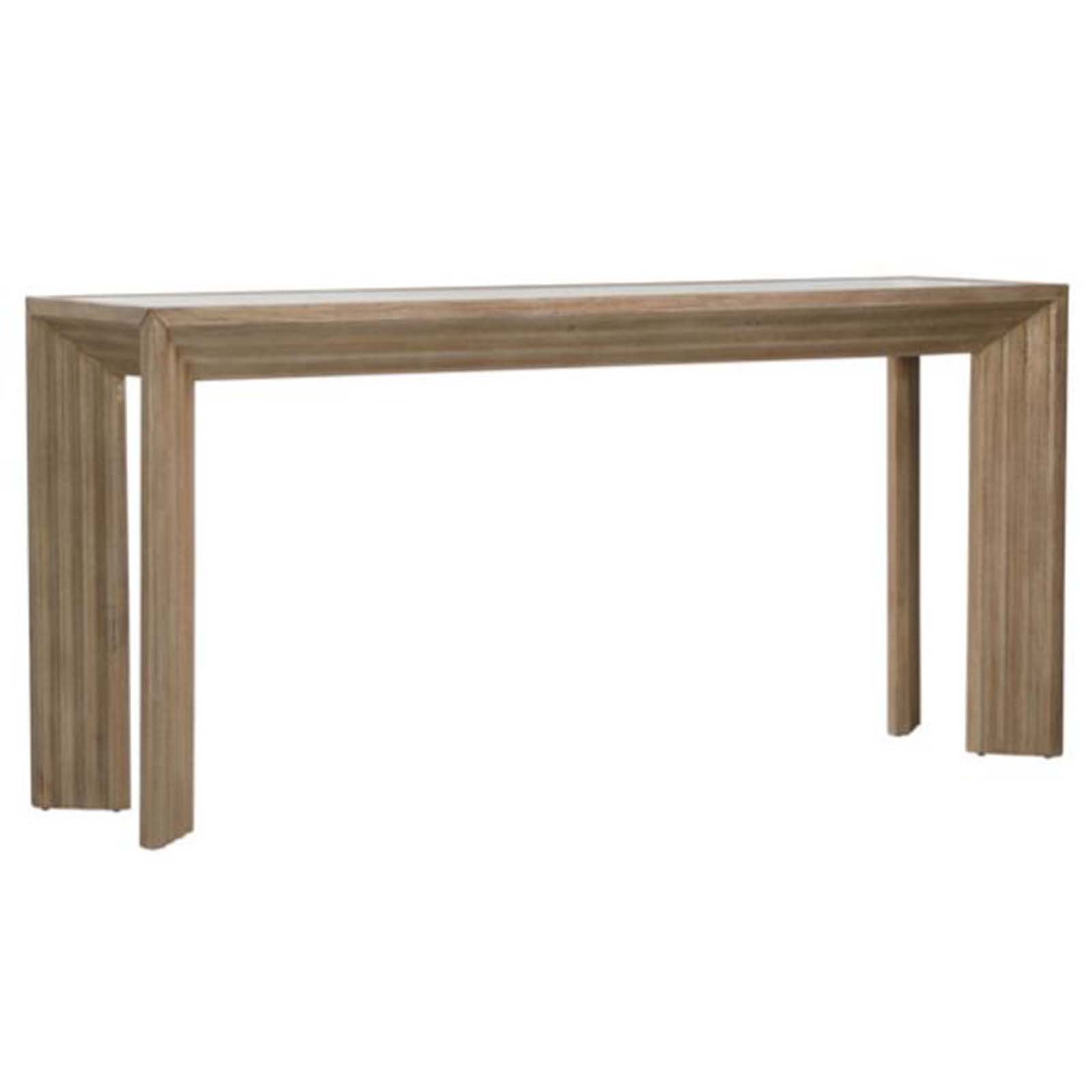 The Beatriz console table has uniquely angles legs with a layered wood base and a glass top, putting a modern twist on the traditional console table!