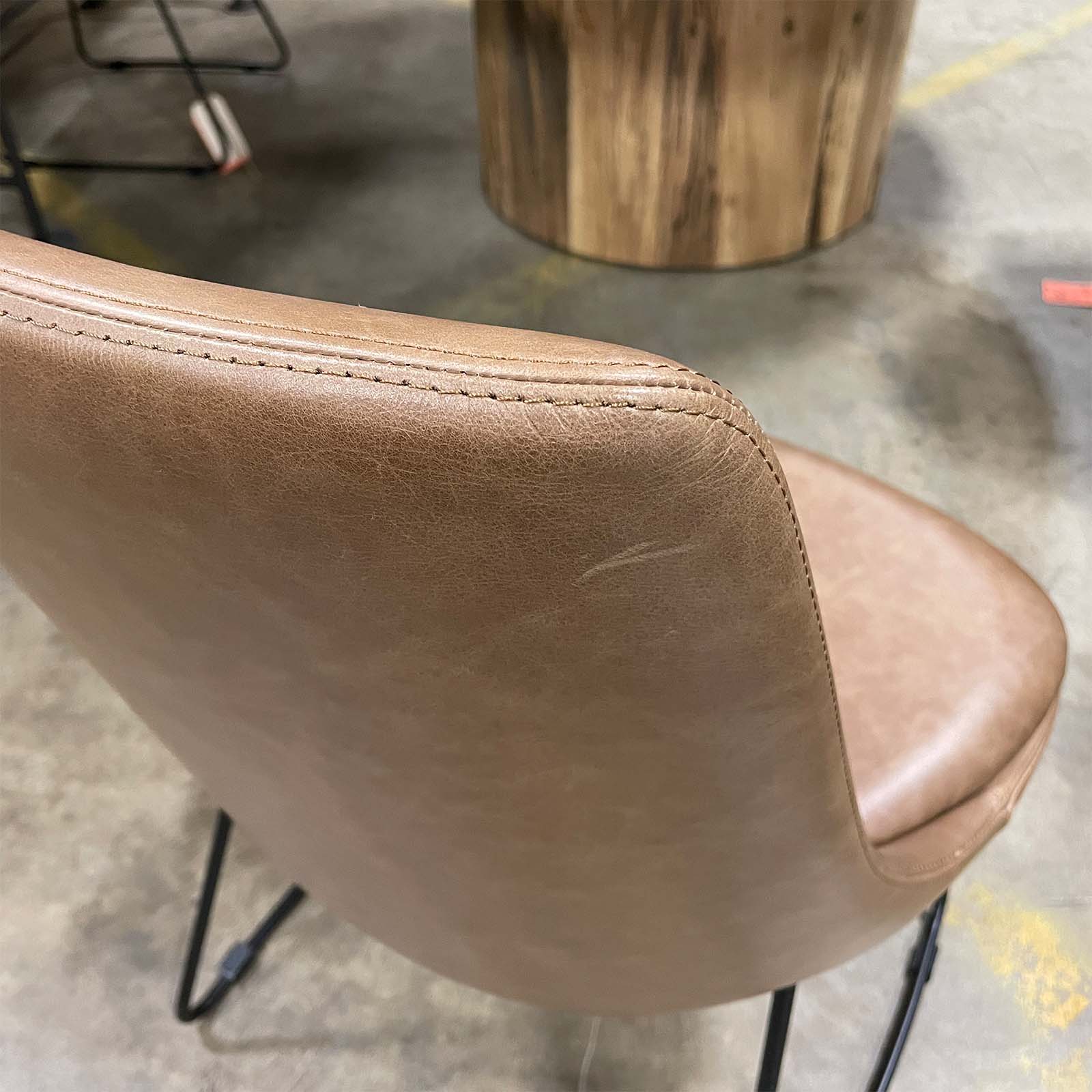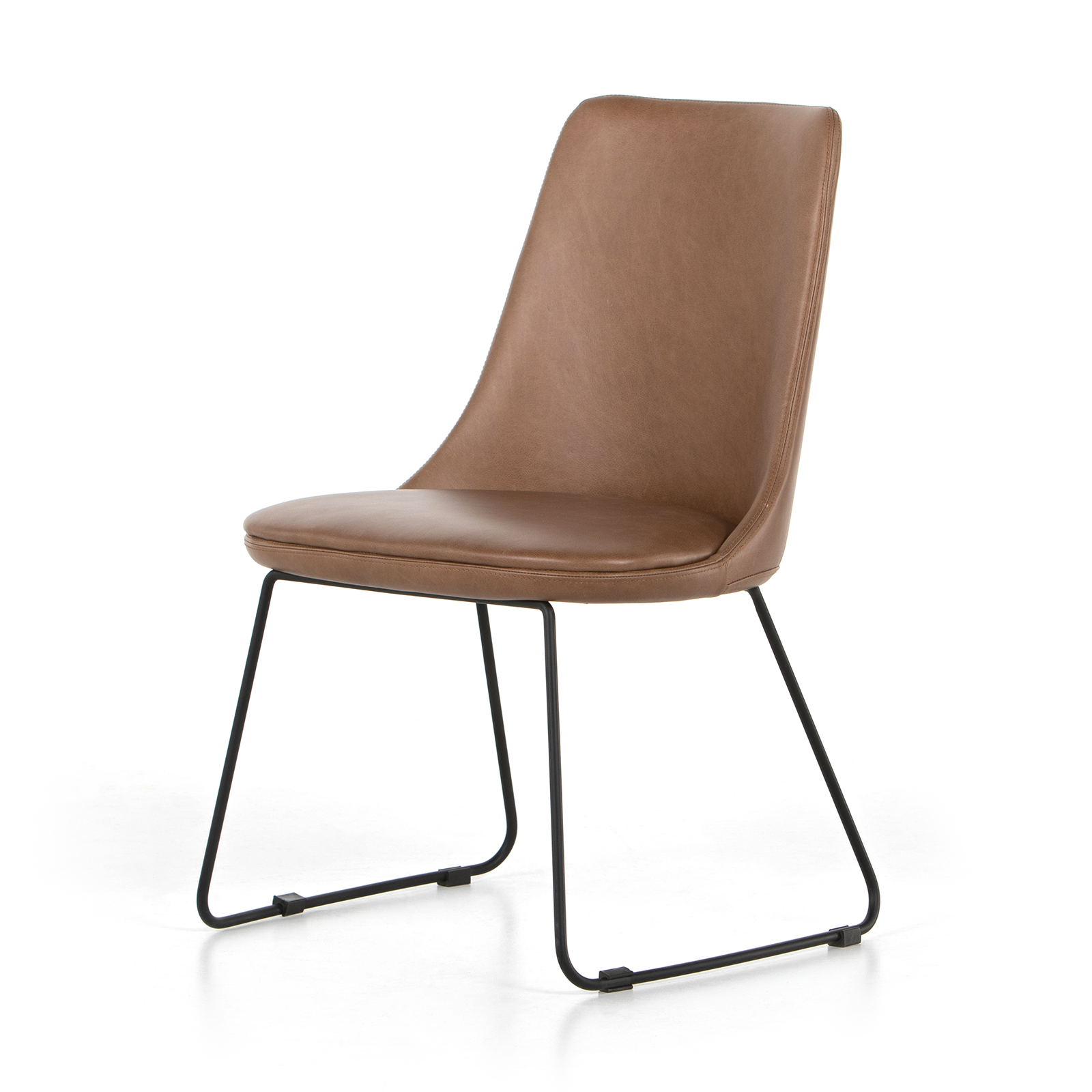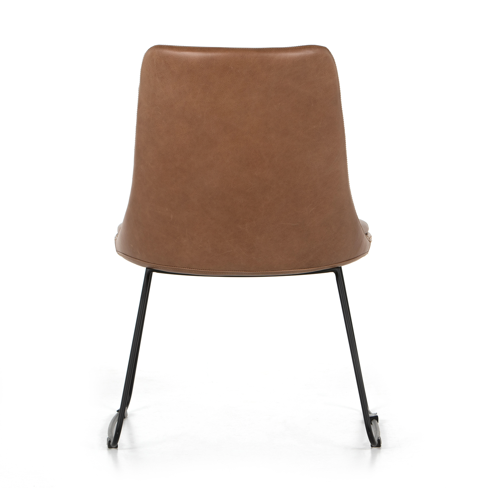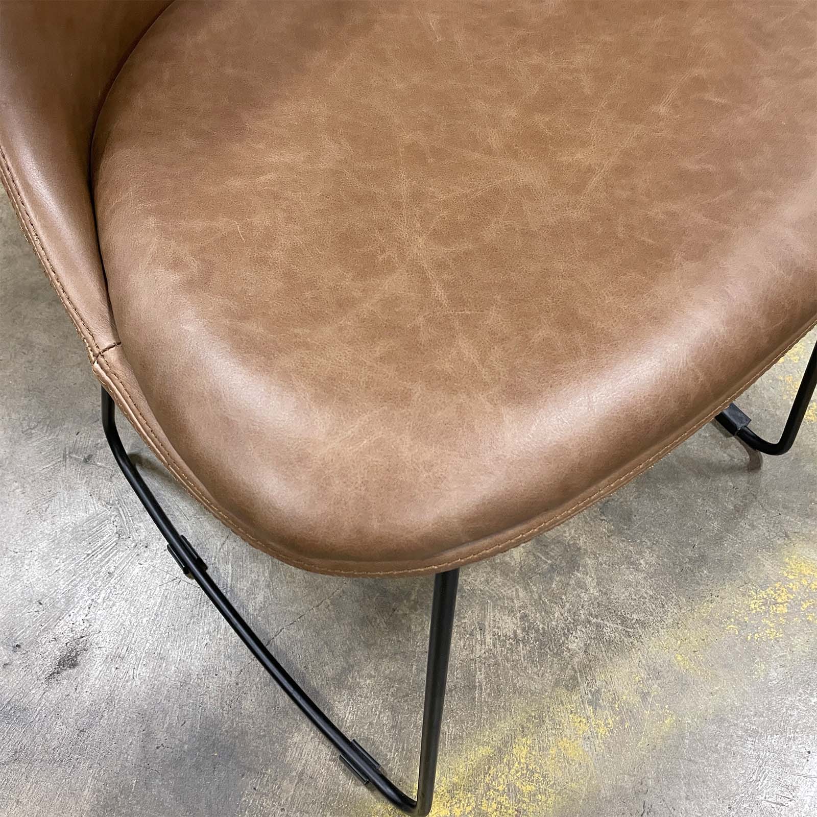 Modern minimalist at its best. Finished in a jet black, slim ski-style iron legs support high-back seating of top-grain leather in a warm, versatile chestnut.