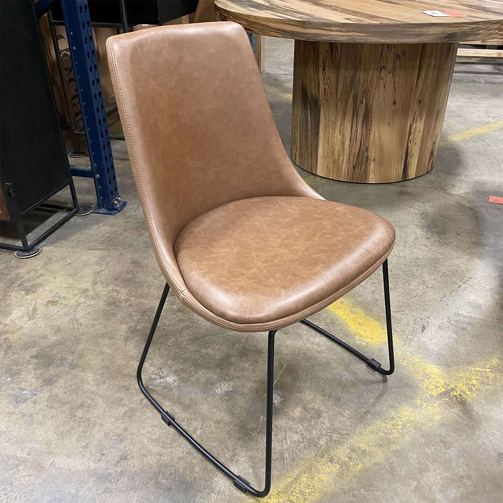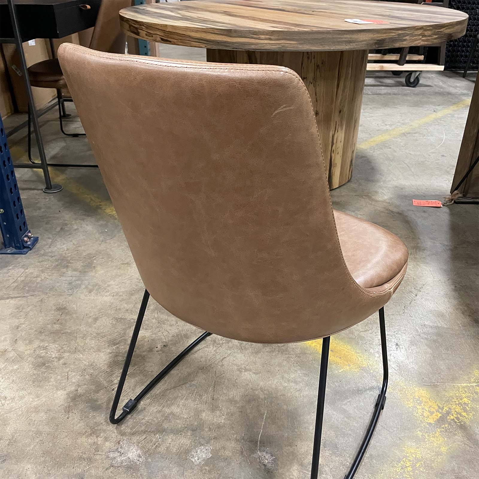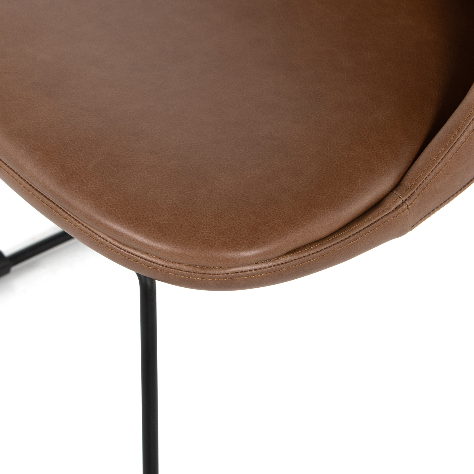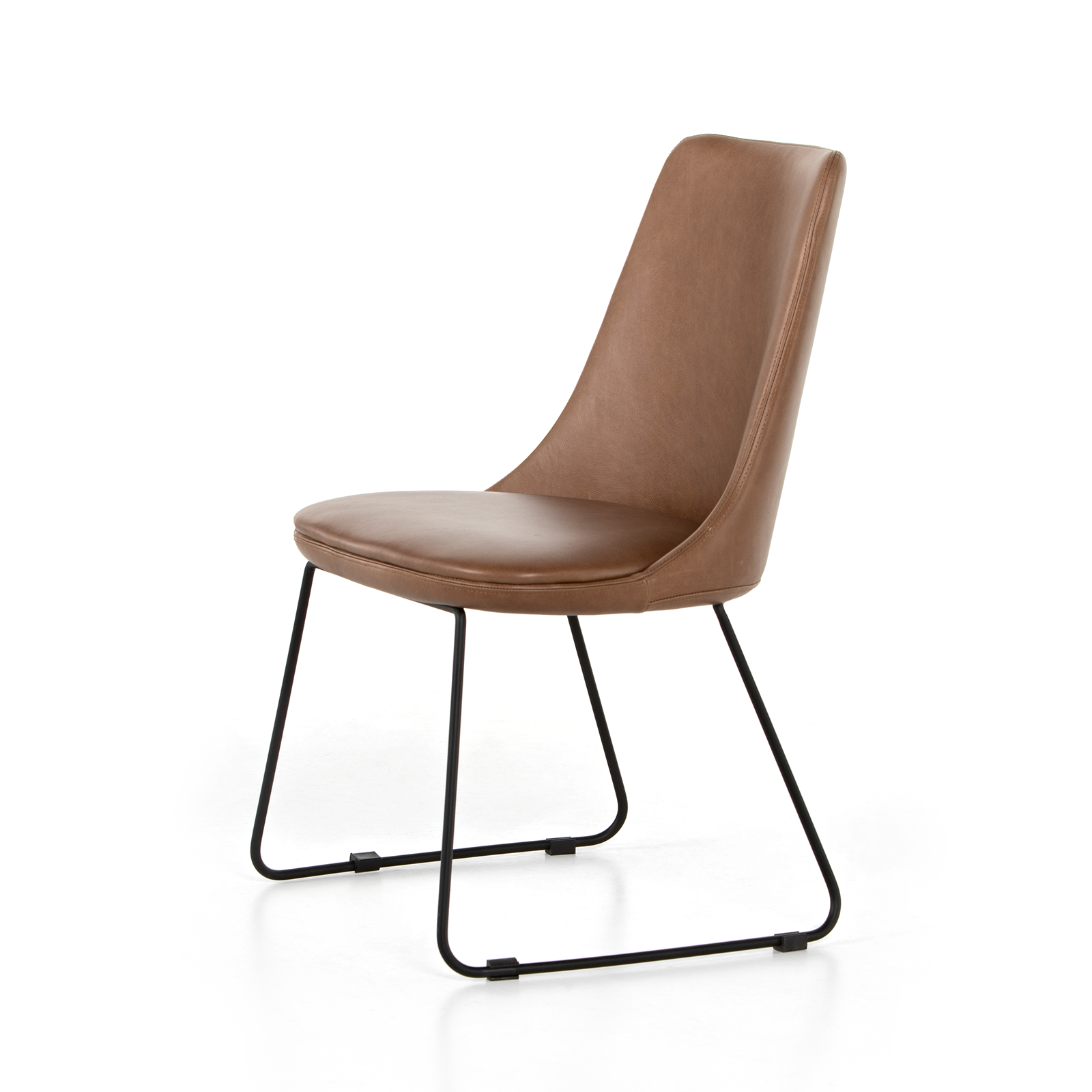 Modern minimalist at its best. Finished in a jet black, slim ski-style iron legs support high-back seating of top-grain leather in a warm, versatile chestnut.