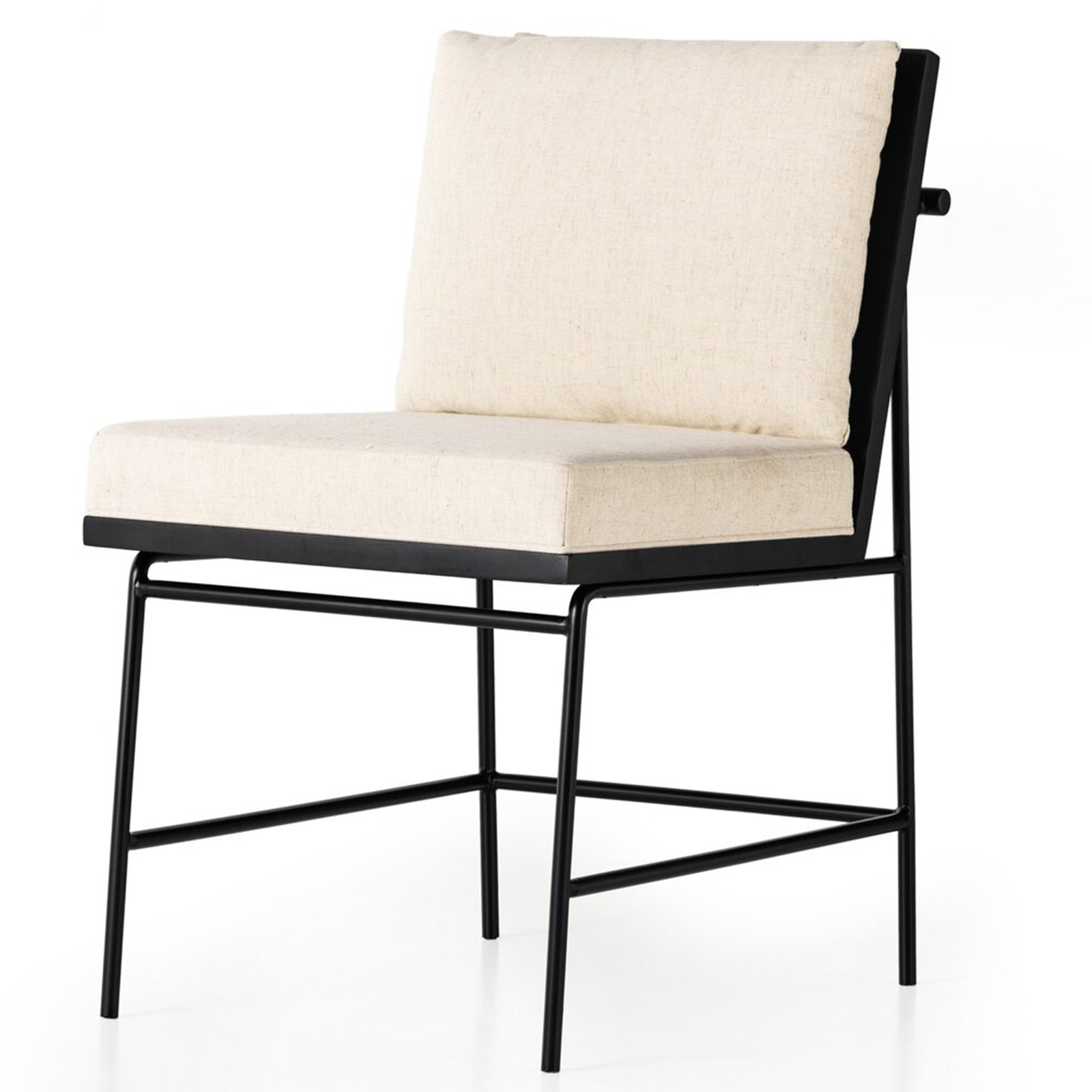 Crisp and clean, with natural panache. Slim, black-finished iron frames a floating ladderback of black solid parawood and a cream-colored seat of high-performance fabric.