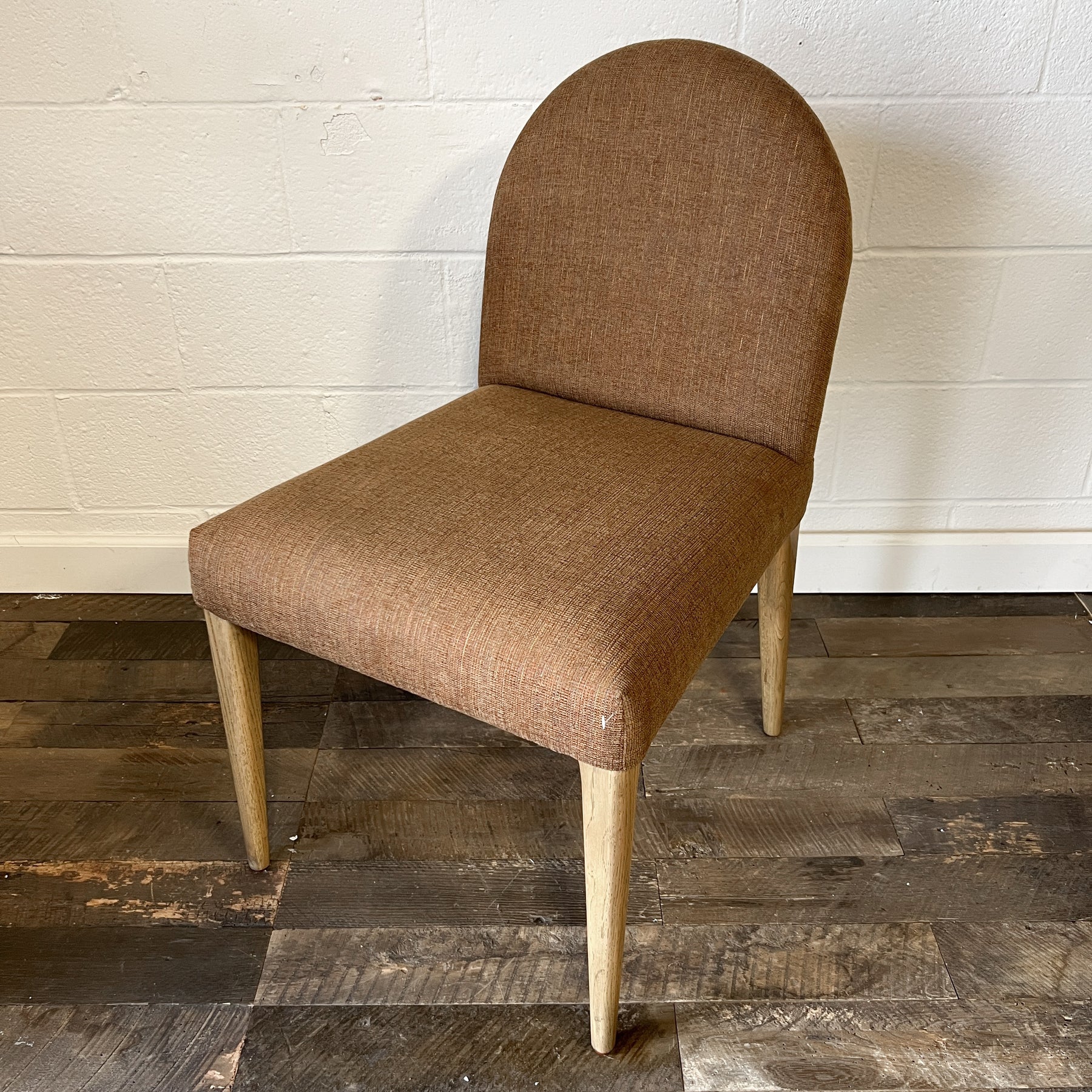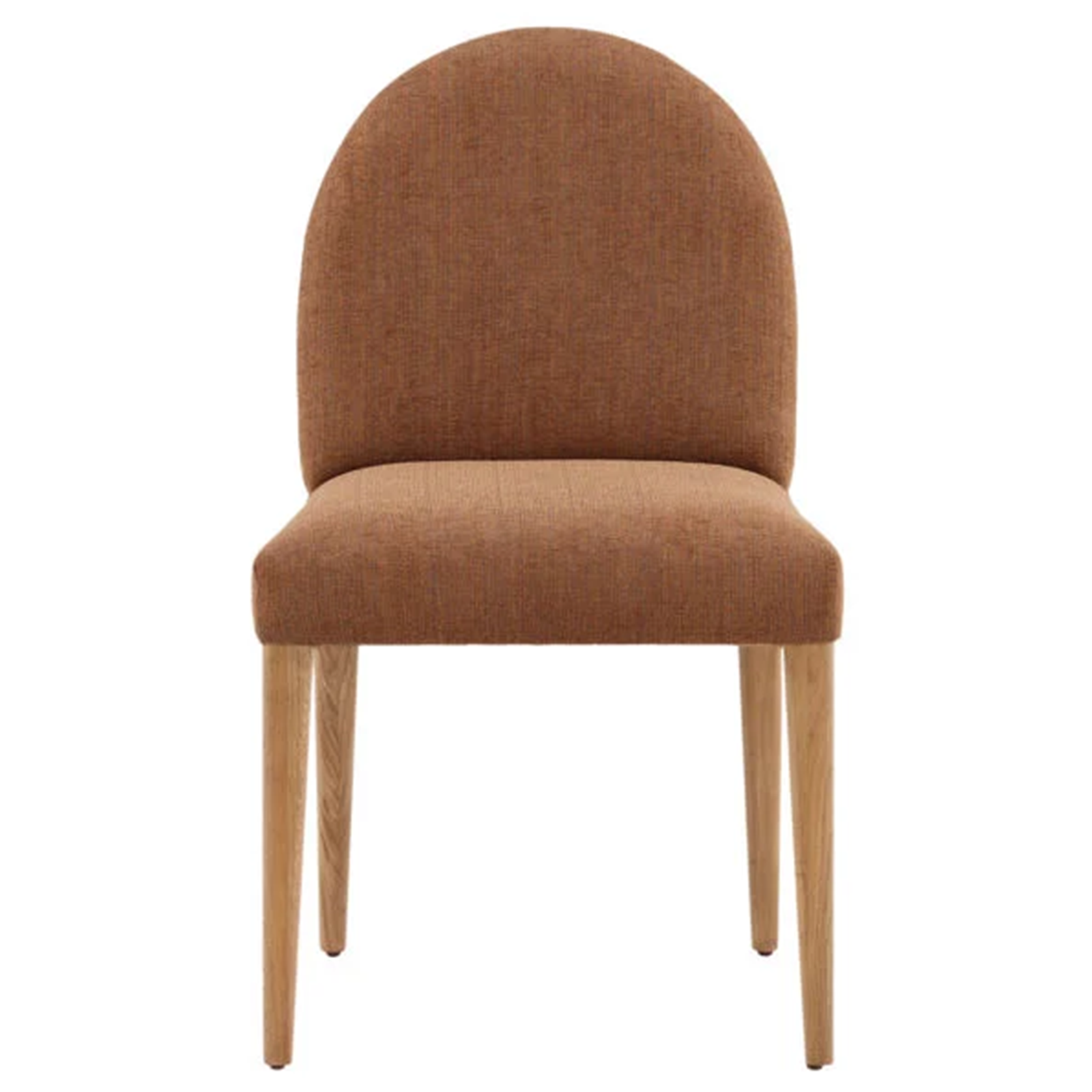 The Memphis Dining Chair in brown features a sleek, minimalist design with a warm wood tone and comfortable, contoured seating for everyday elegance.