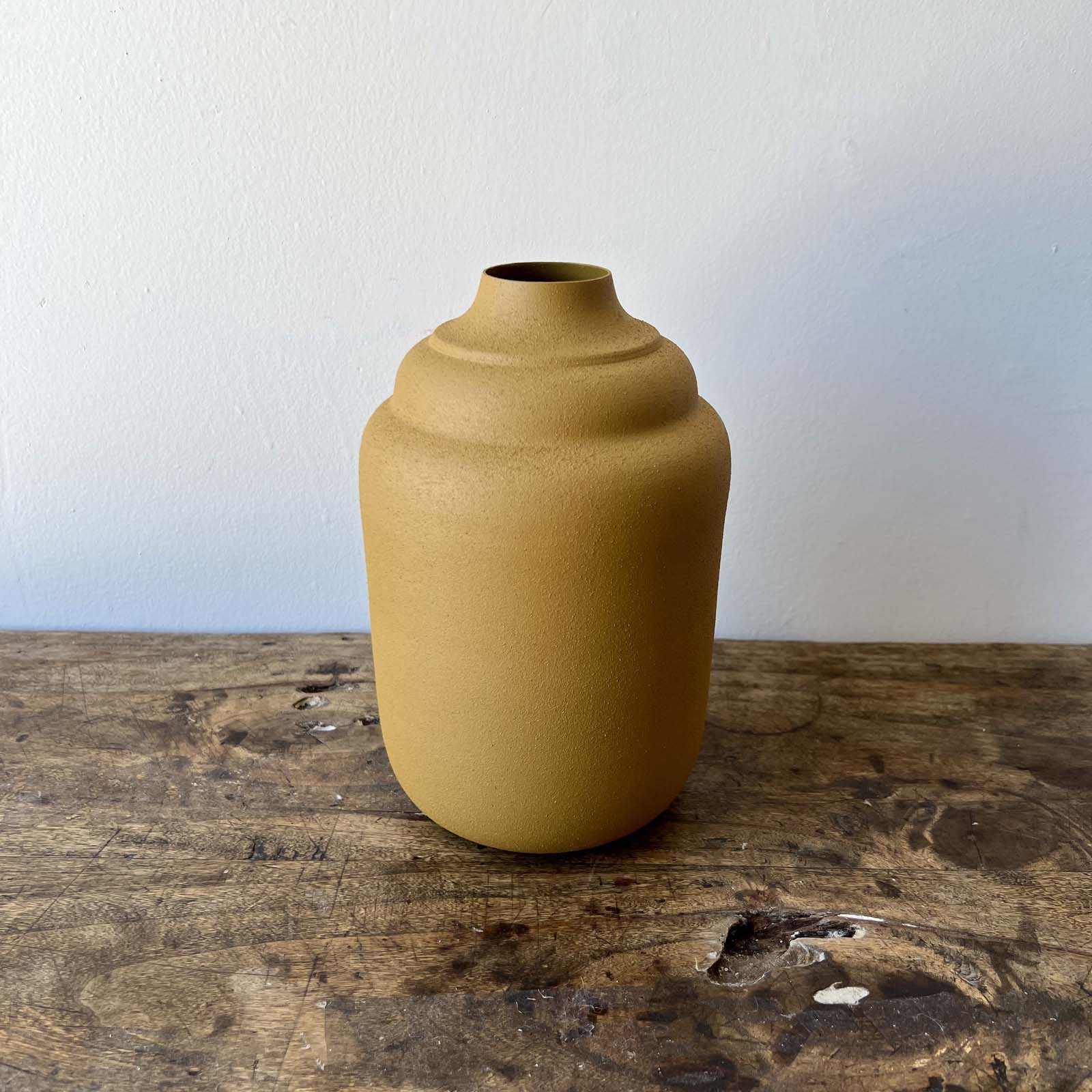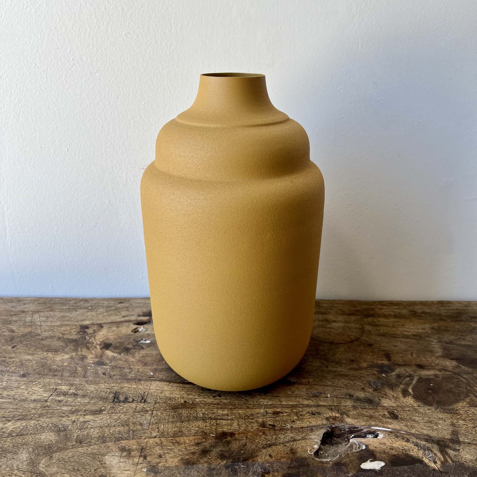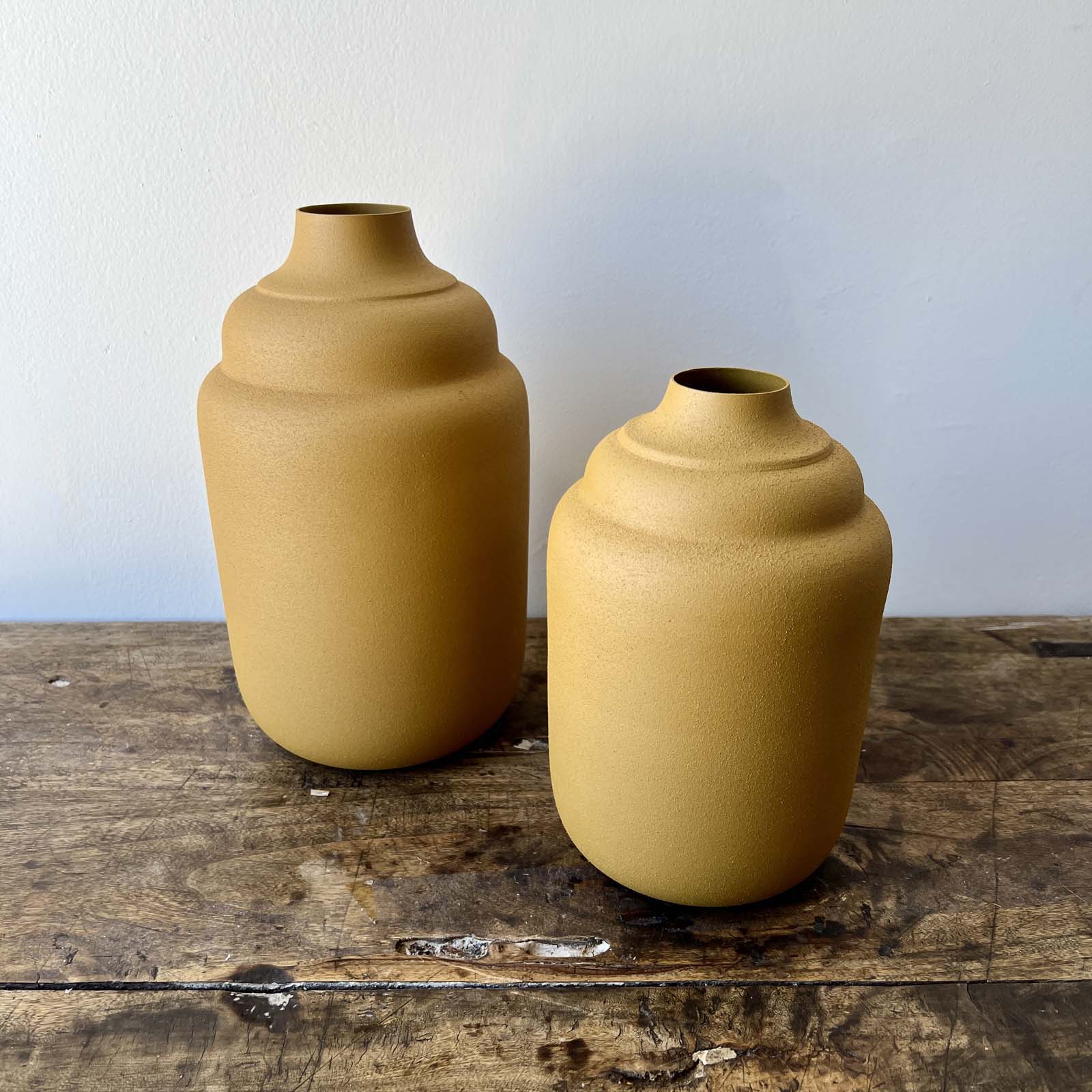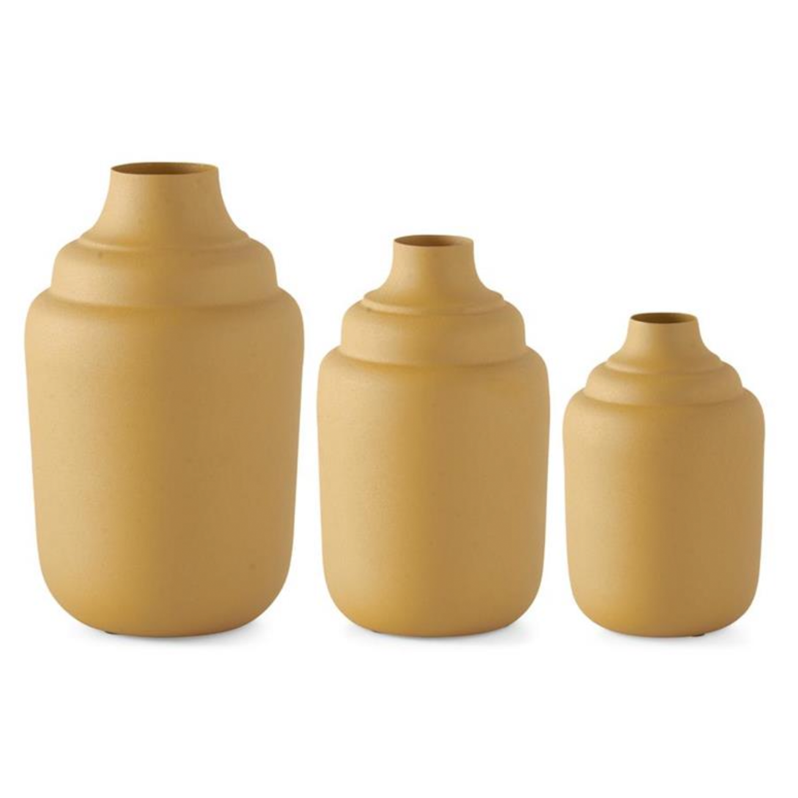 Bring a pop of color to your styling with these yellow metal vases available in 3 sizes.