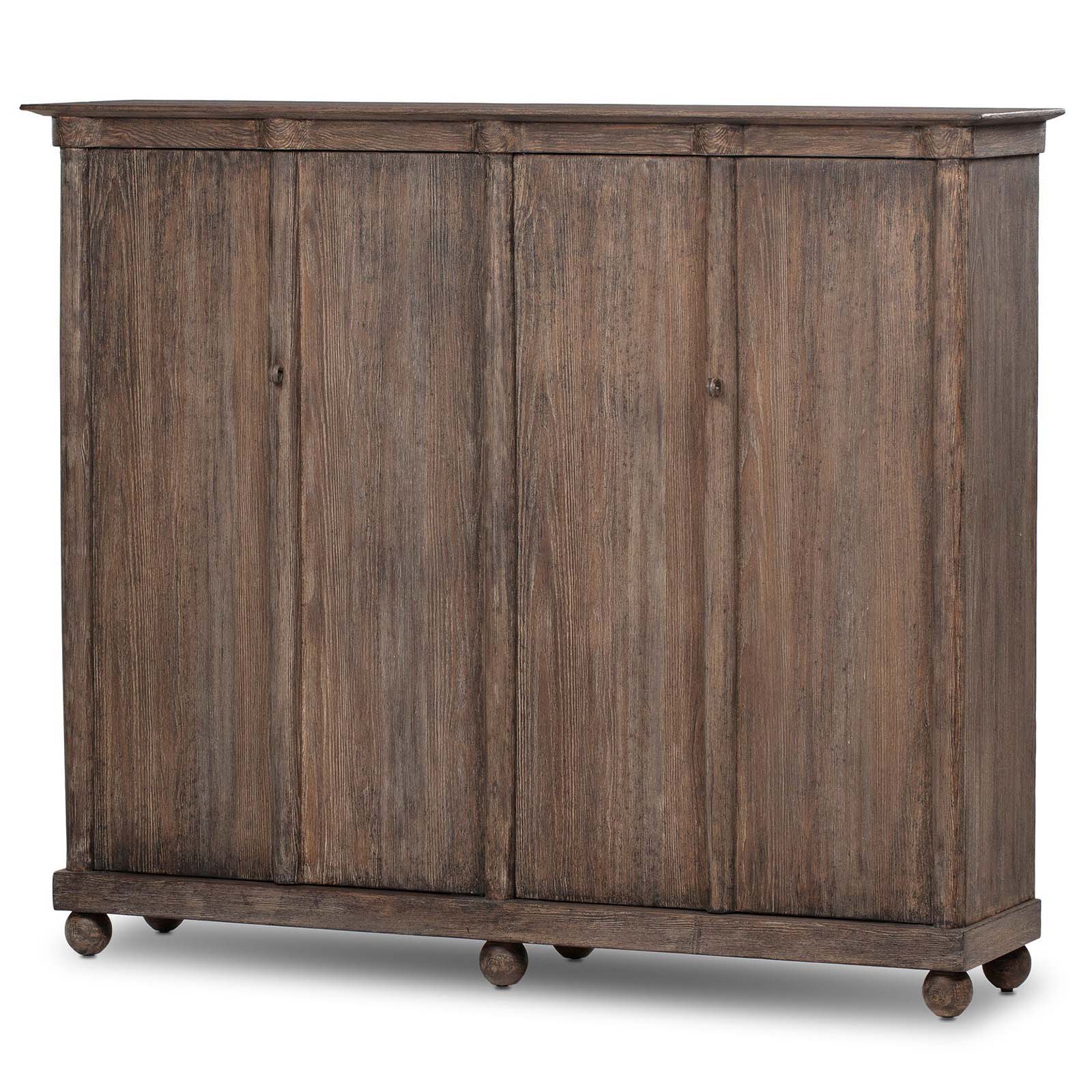 Crafted from solid pine and veneers in a distressed finish for a rustic look.