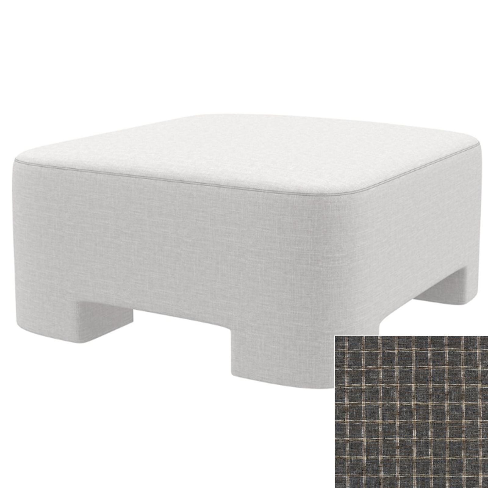 The Brady Cocktail Ottoman is wrapped in a polyester plaid fabric, offering a stylish blend of comfort, texture, and classic patterning for any living space.