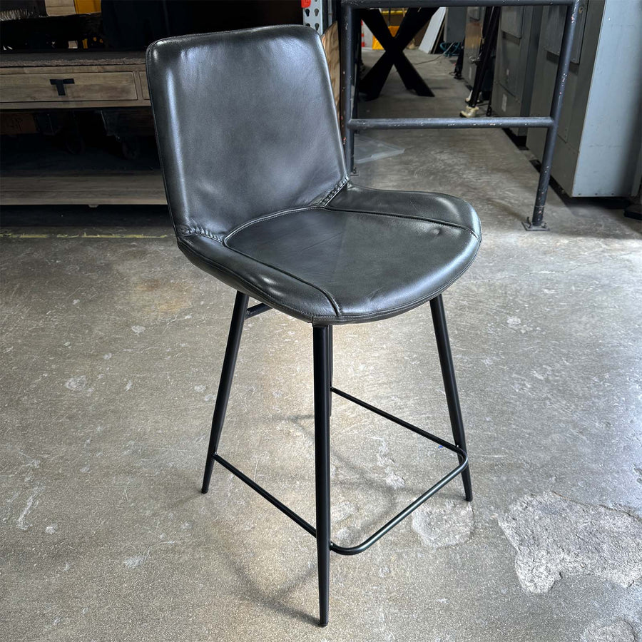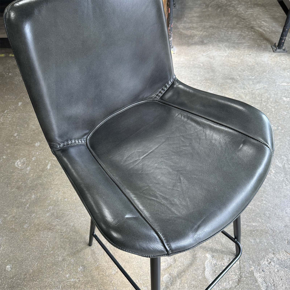 Relax in the kitchen in style with the Monet counter stool wrapped in a charcoal black leather with a green undertone and baseball glove stitching.