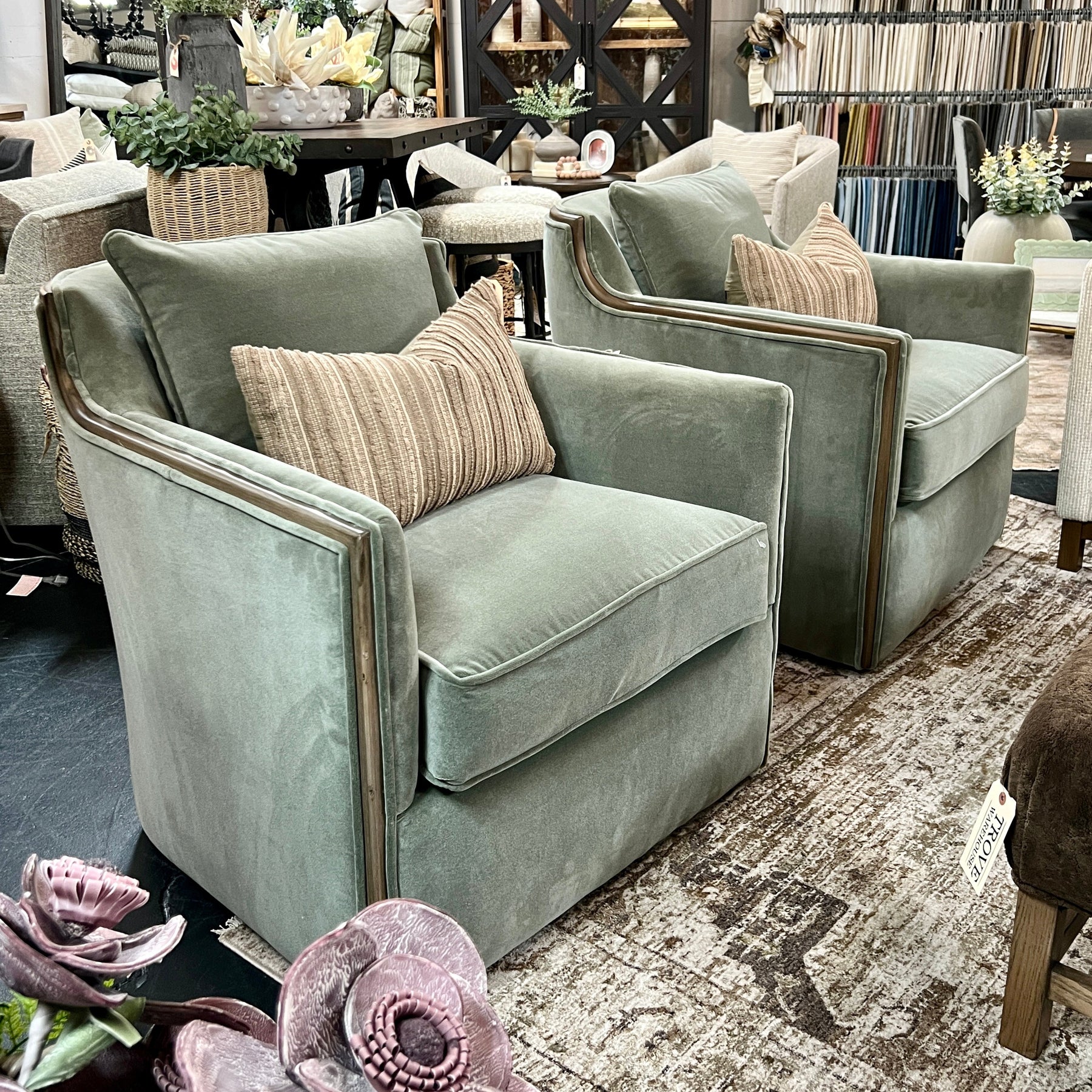Cozy up in the Oakley Swivel Chair in any lounge space in your home! Please let us know if you would like to check out a fabric sample to confirm this is the perfect piece for your space.