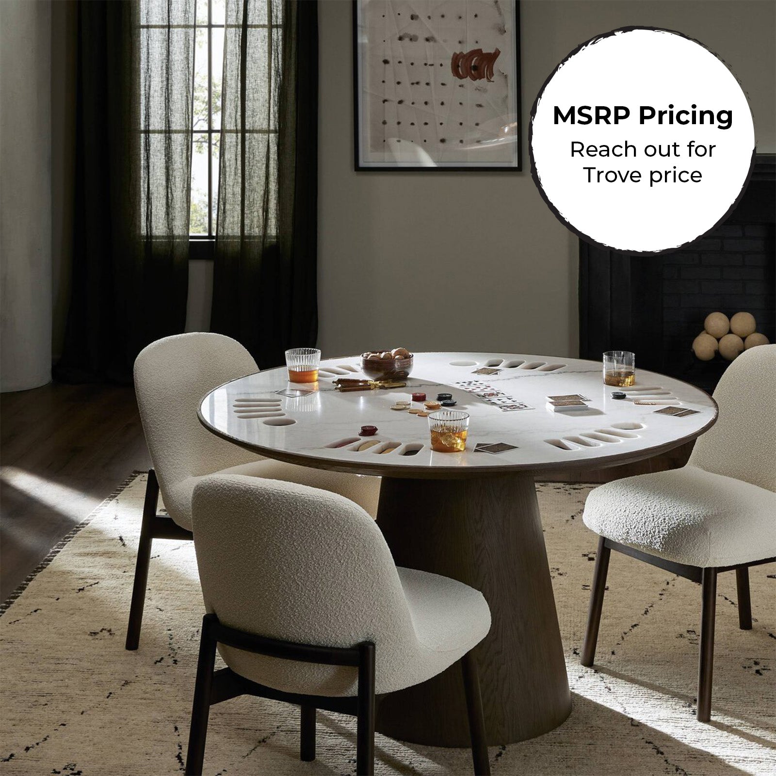 Beautiful wood and marble table featuring chip and drink cutouts for ultimate game play.