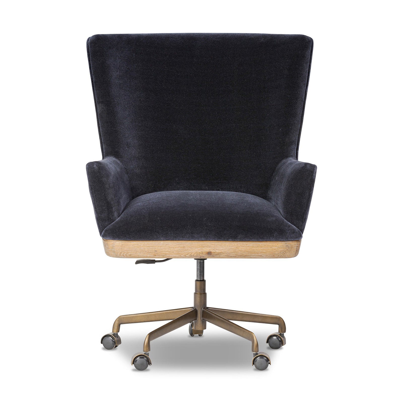 The Bernardo Desk Chair is a comfortable executive style chair, with a velvet wool blend and high back, this is the perfect chair to add comfort and style to your office setup!