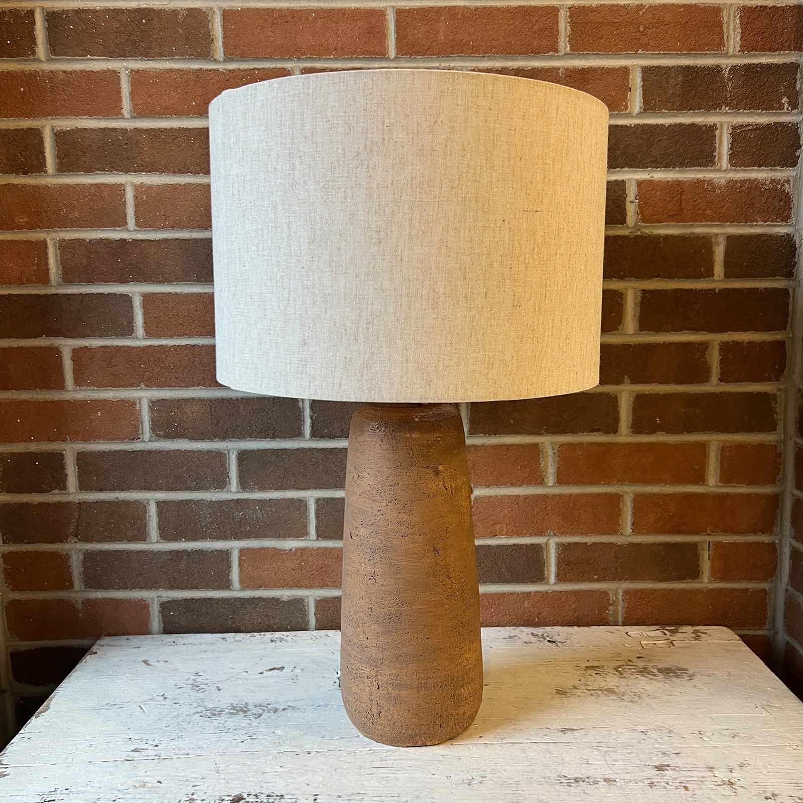 The Ada table lamp features a distressed ceramic base with a warm terracotta finish.