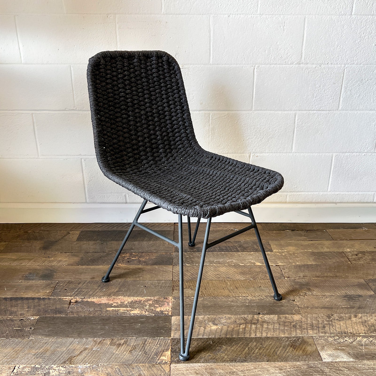 Bring a touch of texture outdoors. A woven armless seat meets charcoal-finished hairpin legs for a sleek, modern look.