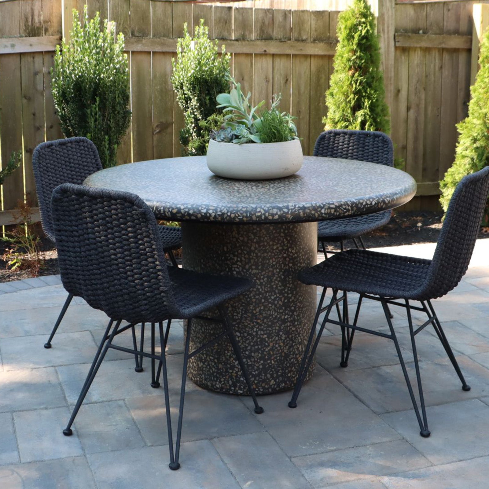 Perfect for indoor or outdoor use, the Cassie dining table is made of a funky concrete terrazzo.