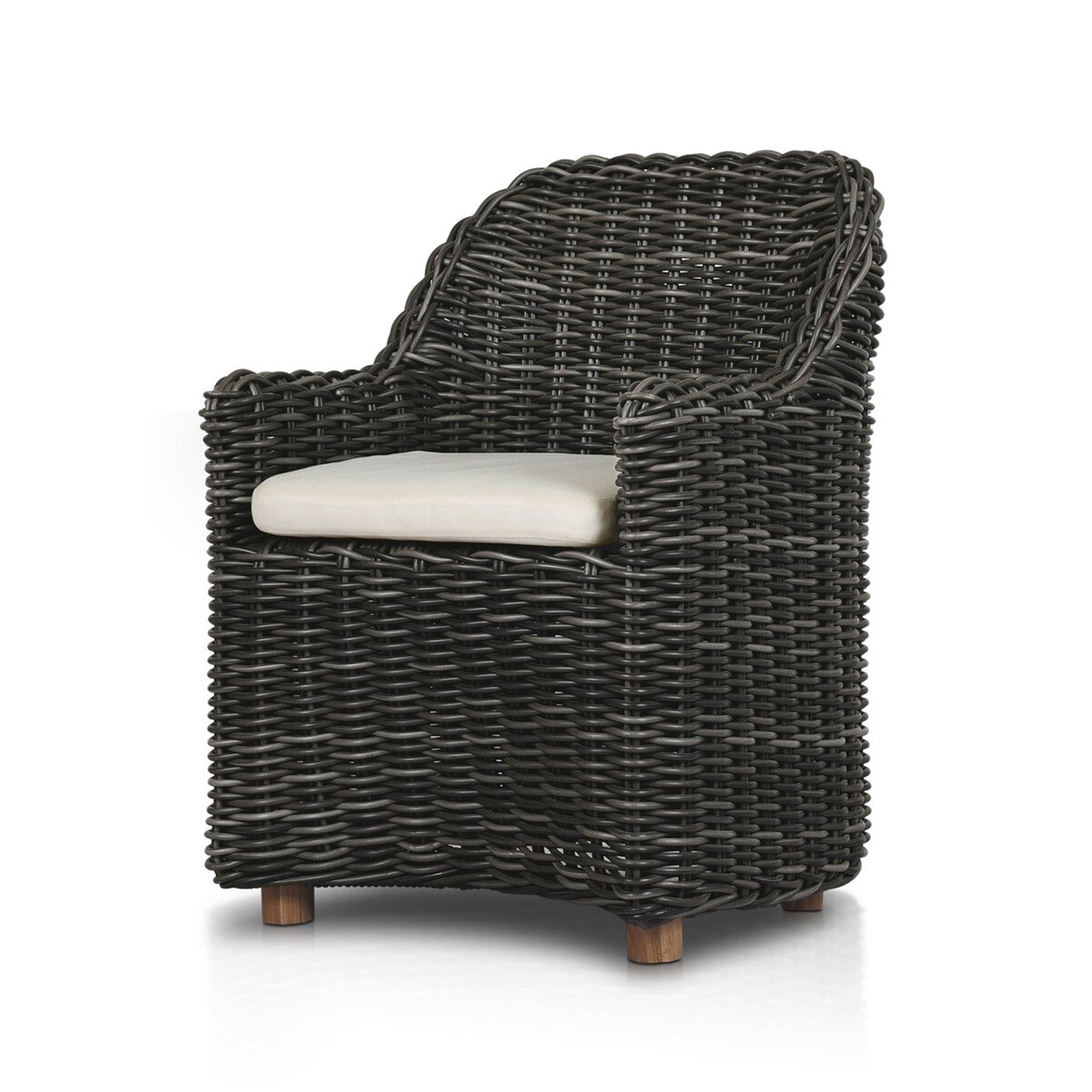 Traditional heritage shape on a grand scale. The outdoor dining chair is crafted from durable natural teak in a gorgeous, woven pattern highlighting the texture's natural highs and lows.