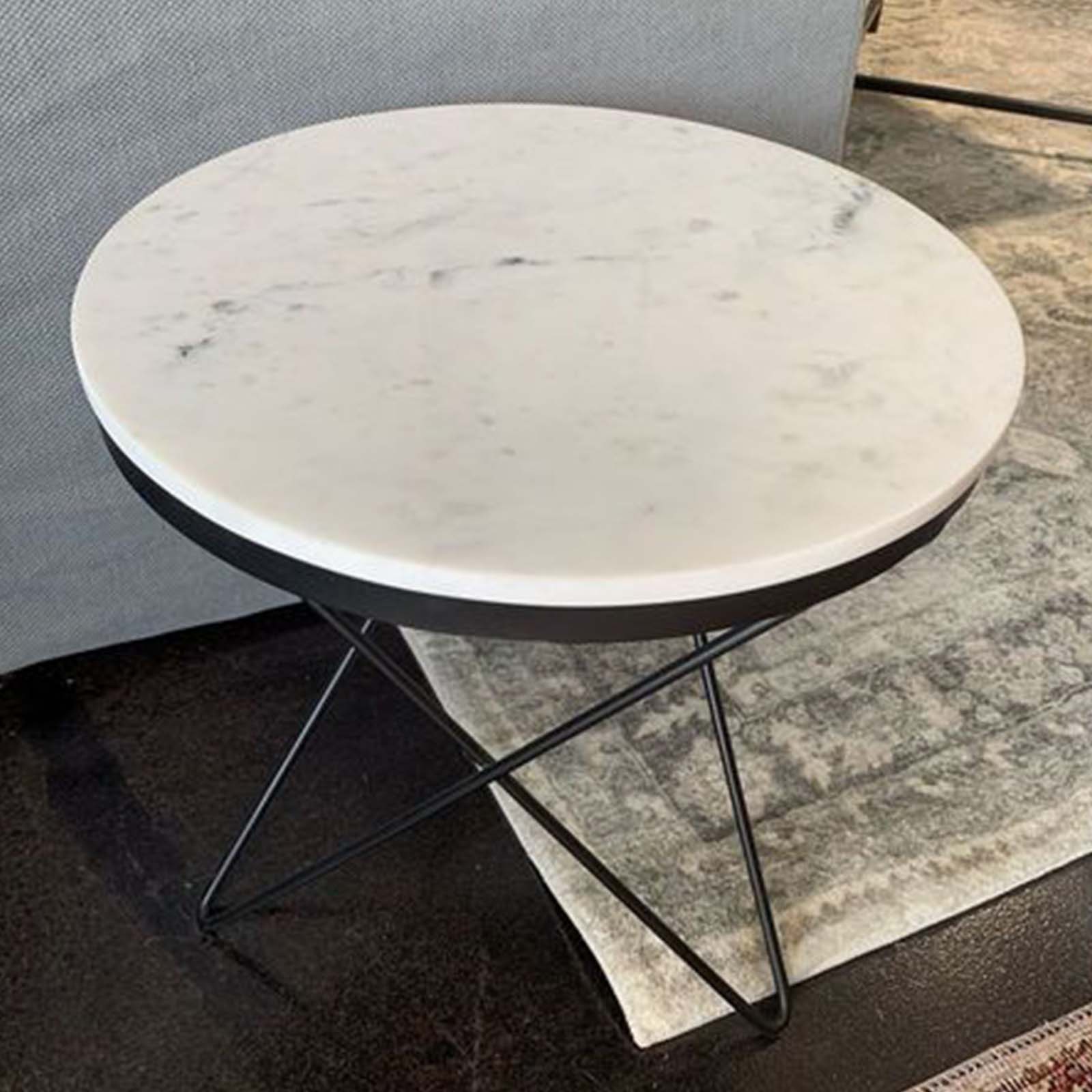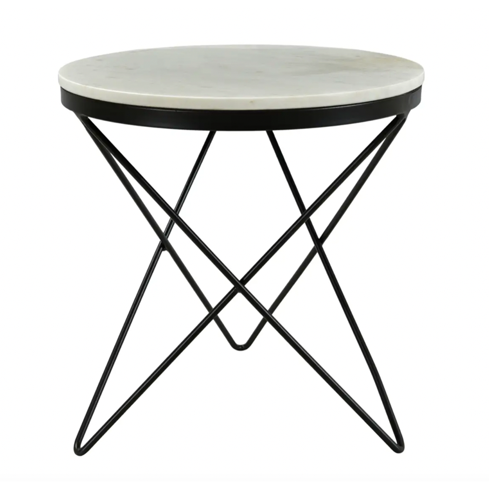 An intricate iron base meets a glam tabletop to create the Higgins side table!
