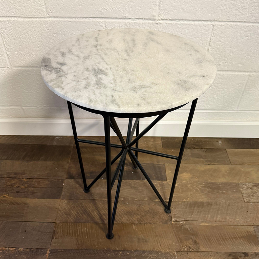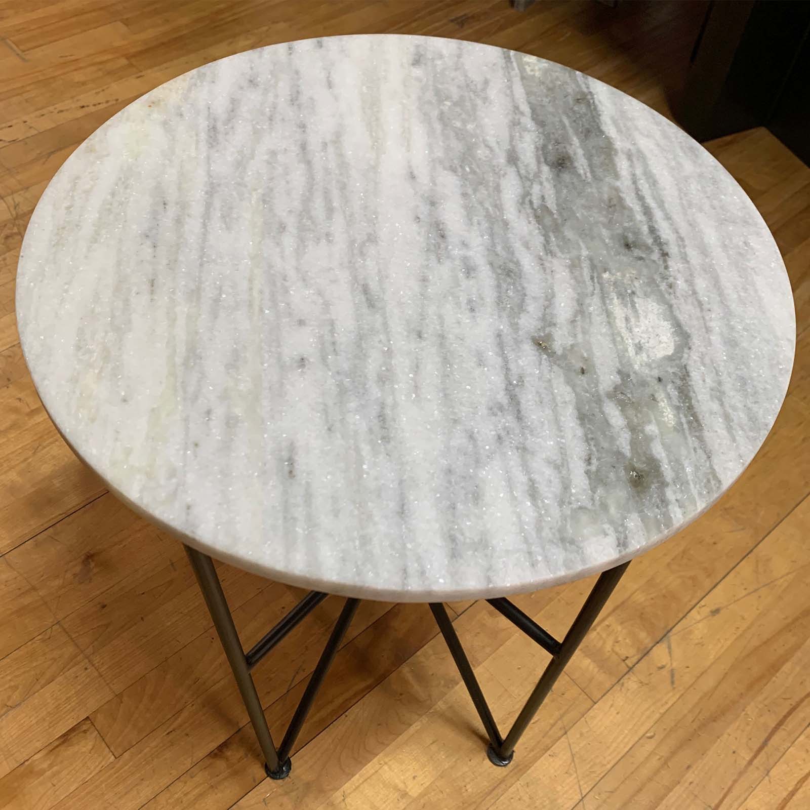 A table that's as unique as it is elegant! The Quary accent table offers high-class contemporary style with a white marble tabletop and sleek, industrial-inspired iron base.