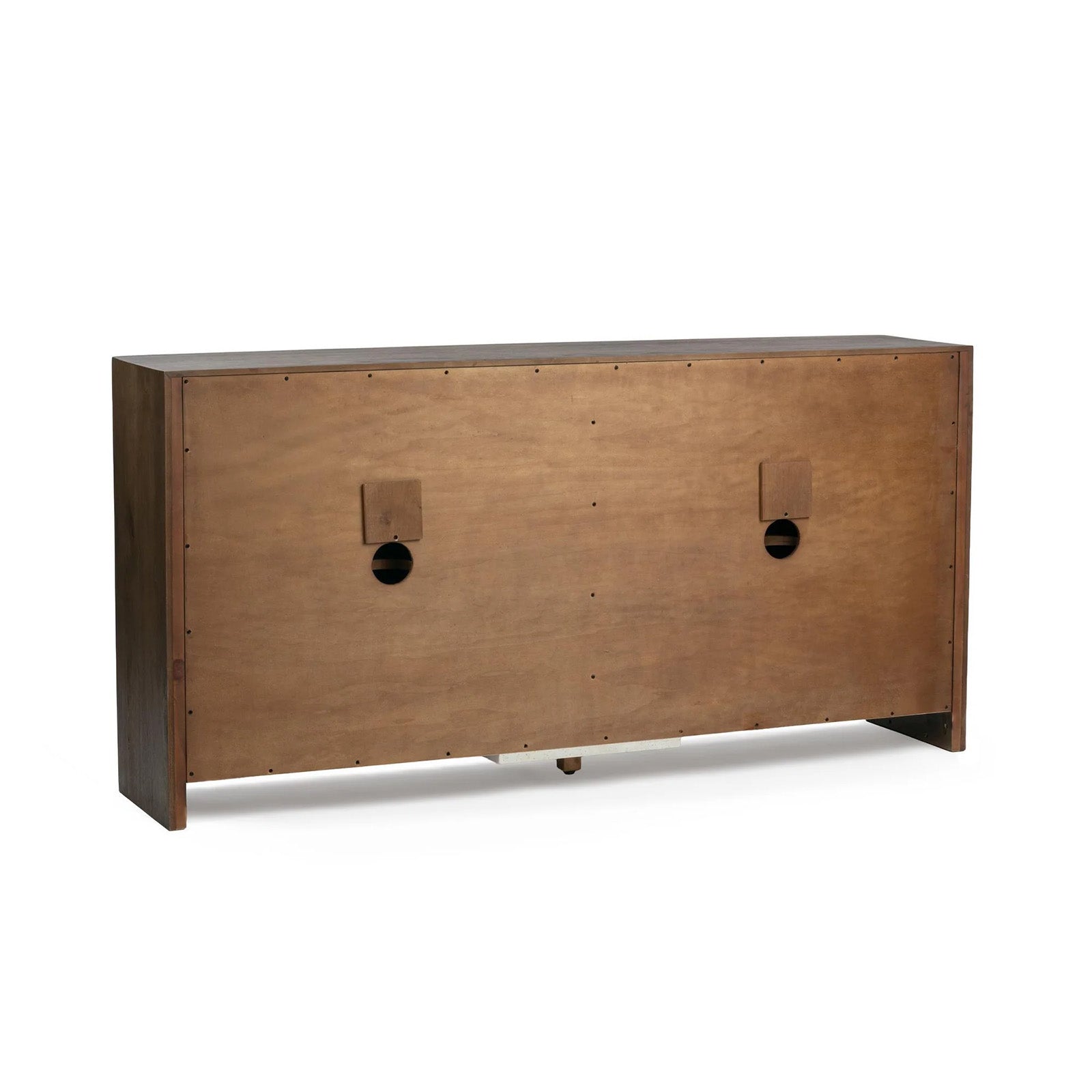 Elevate your living or dining space with this oak veneer Buffet featuring sleek brass hardware pulls for a modern touch. Designed with functionality in mind, it includes spacious storage, adjustable shelving, and media holes for easy cable management.