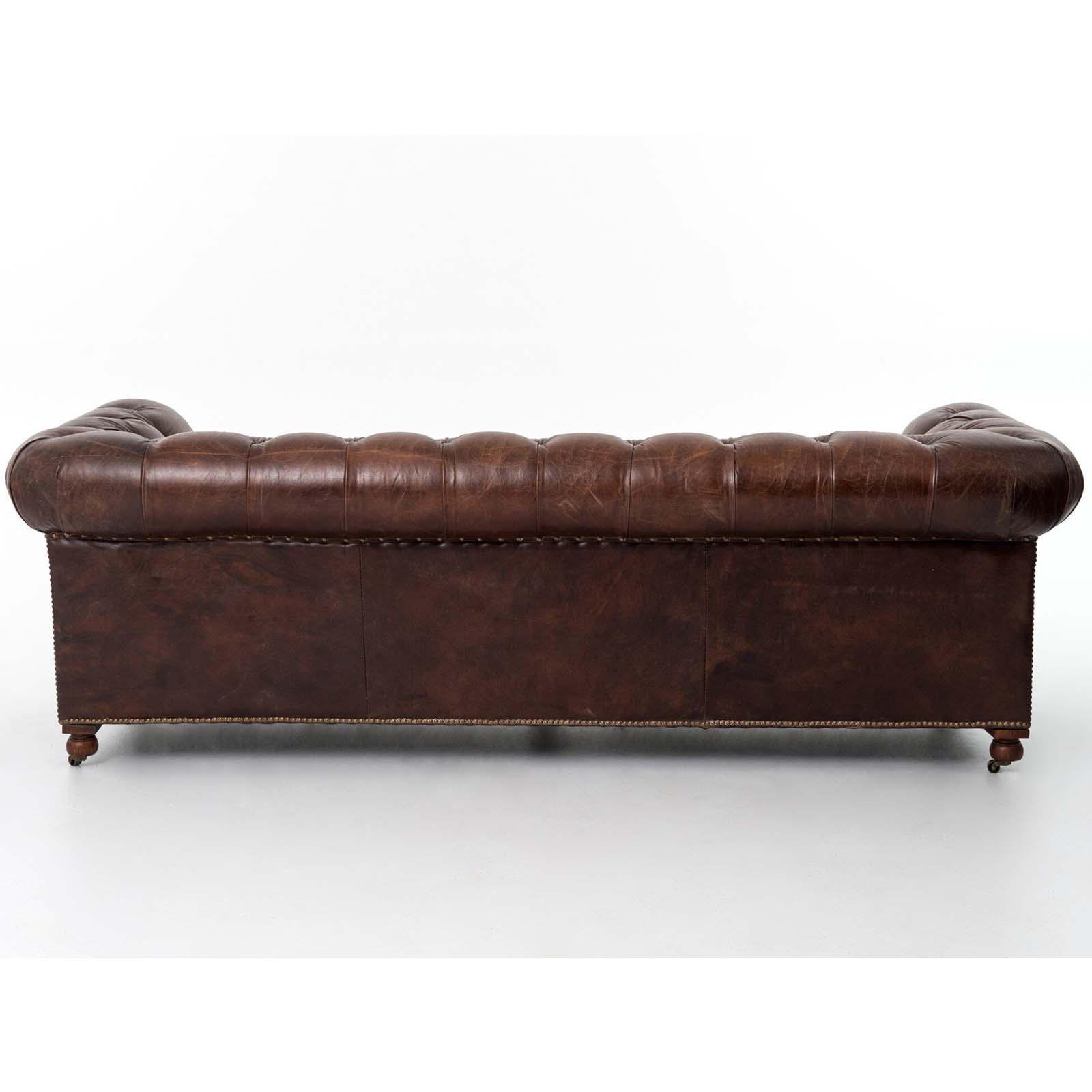 This dramatic Chesterfield sofa has a grand, men's club feel. Saddle-toned, top-grain leather is lovingly aged — an effect that will intensify beautifully in time.