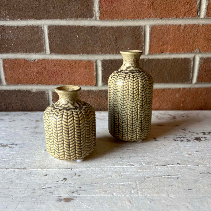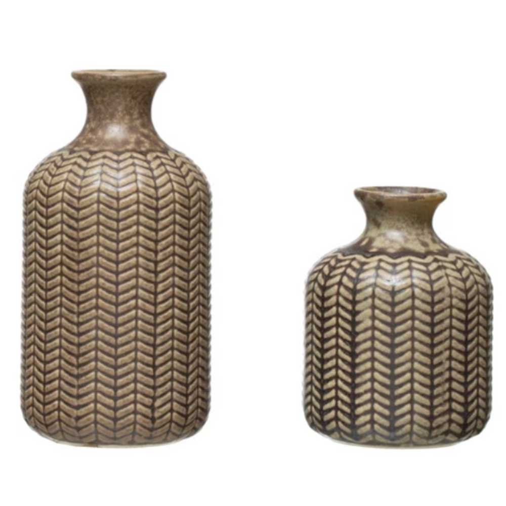 Accessorize your favorite space with this stoneware vase finished in an olive green color.