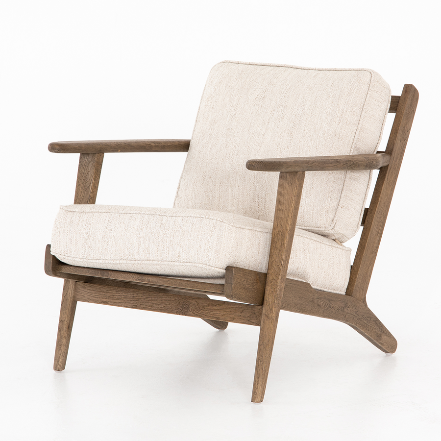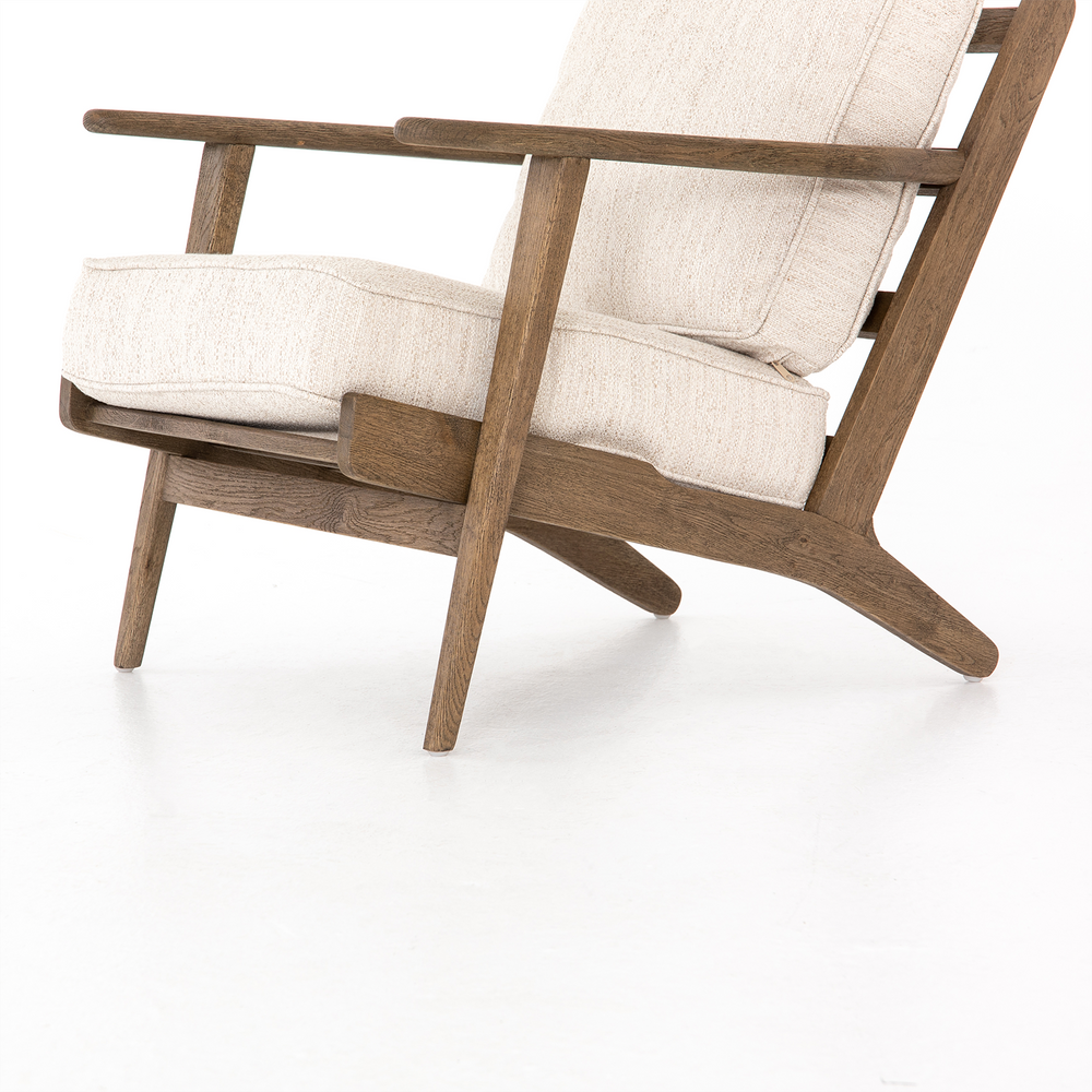 An updated take on the classic Adirondack, the Archer lounge chair pairs a soft natural cushion with a wire-brushed oak frame. This edition has a naturally weathered look to give your space just the right amount of reclaimed character.