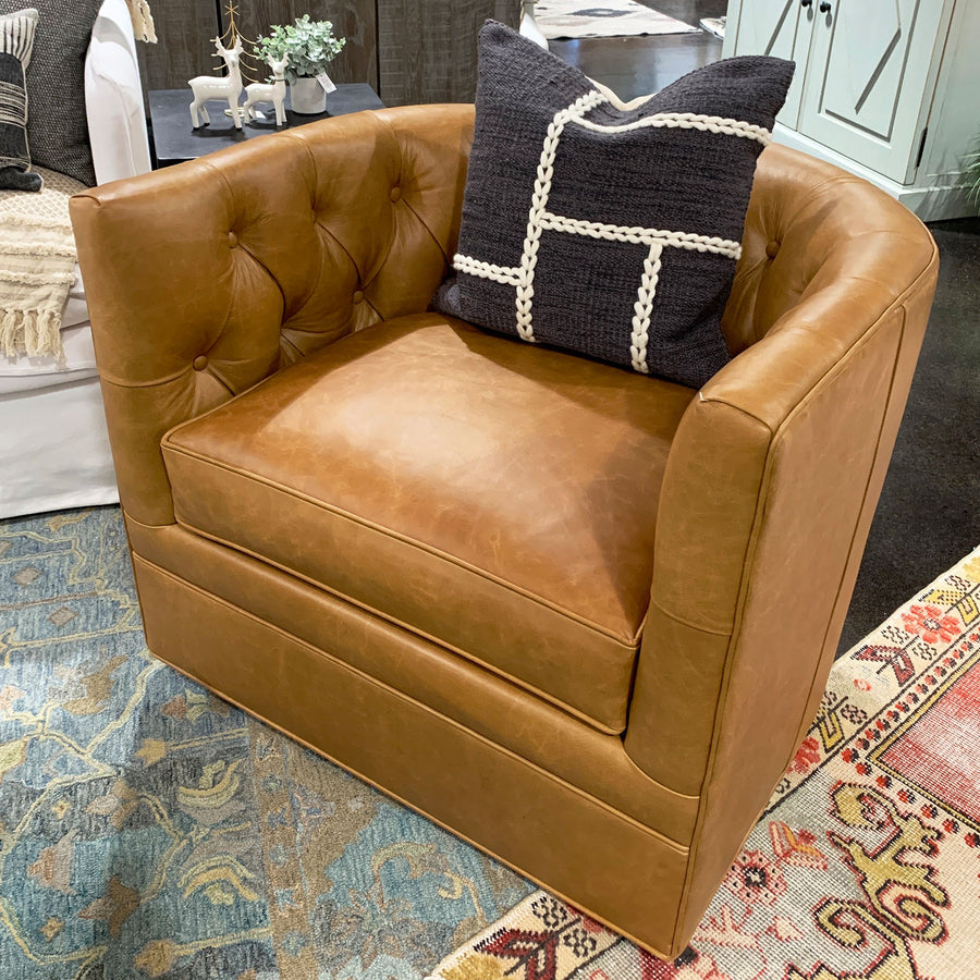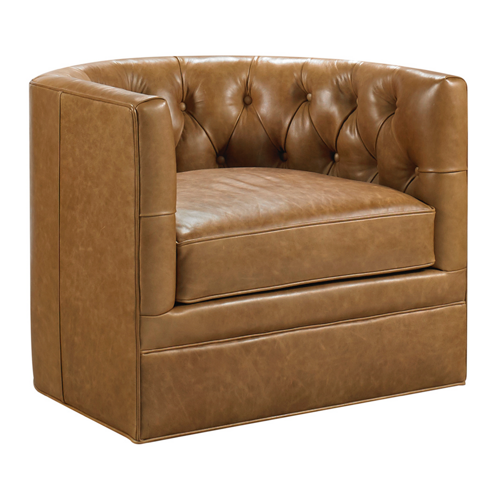 Wrapped in a warm chestnut leather, the Ariel swivel chair can give you an angle in every room perfect for entertainment!