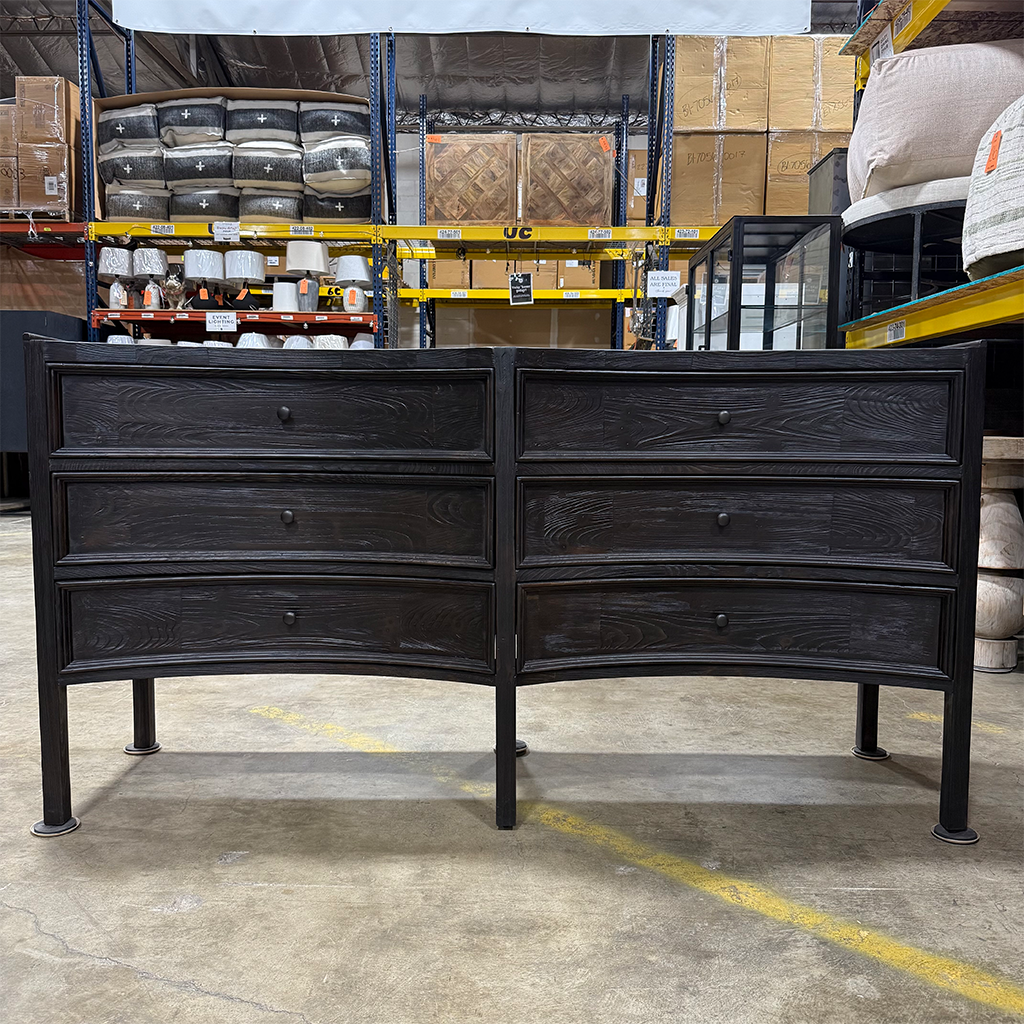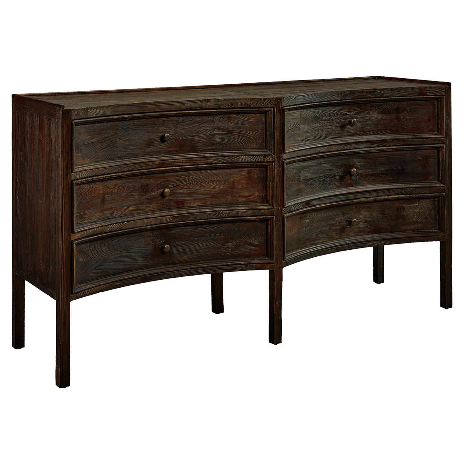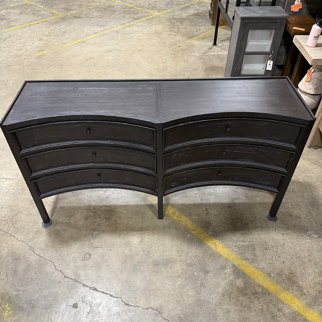 A concave profile makes this chest a stunning addition to any room, and the charcoal rubbed to chocolate finish enhances its design impact. Drawers offer plenty of storage, making this chest a practical and stylish choice.