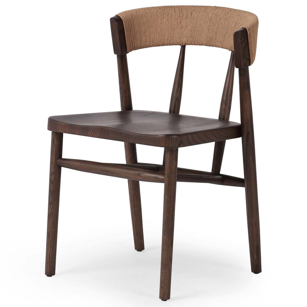 A solid oak dining chair defined by tapered legs and framing gives an updated look to the classic whistler chair. Finished with a paper rush wrapped detail on the back.