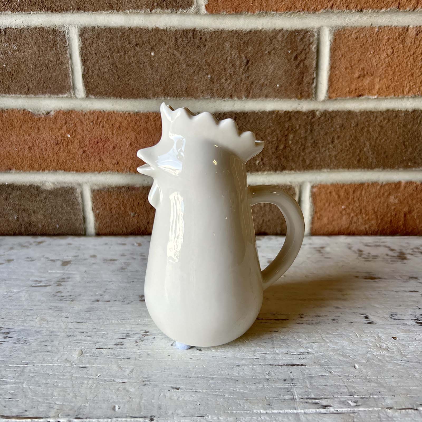 Add a touch of fun your table with this novelty chicken shaped stoneware creamer ready to add flavor to a cup of tea or mug of coffee.