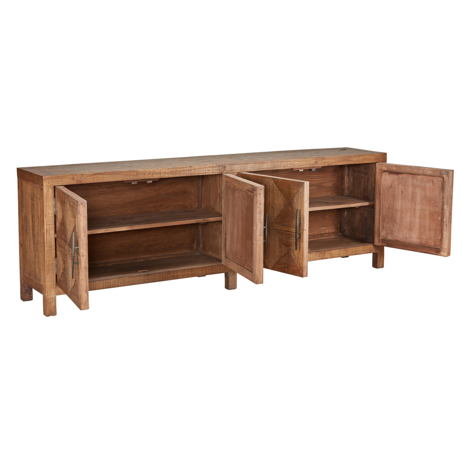 The Elani sideboard is made with solid pine and features a checkerboard pattern that highlights the wood grain.