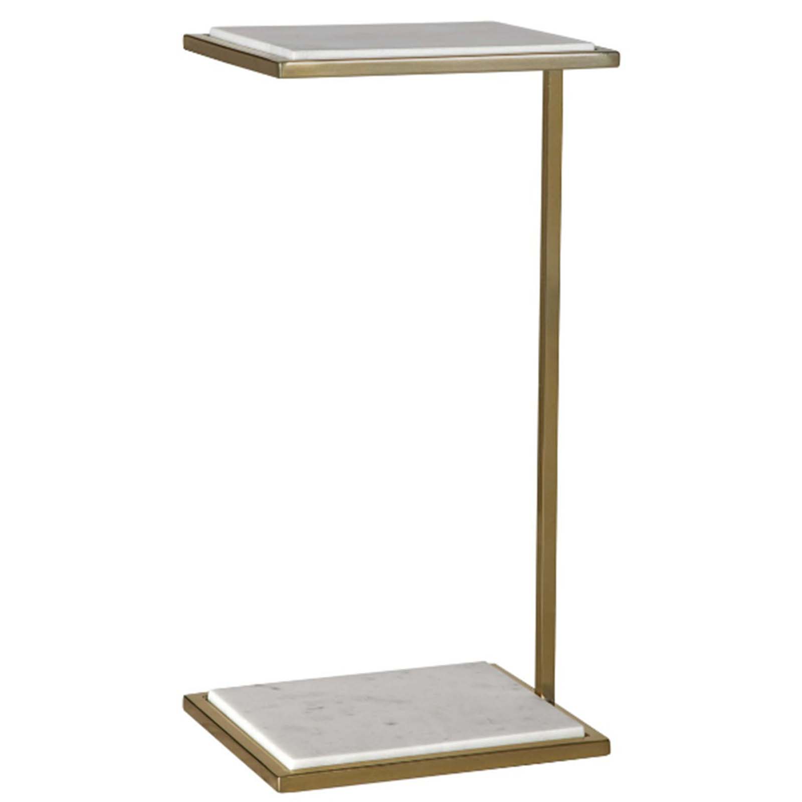 The Evan drink table is ideal to pull up to your favorite seat and enjoy a beverage. Featuring a honed white marble top and base, framed in stainless steel plated in brass.