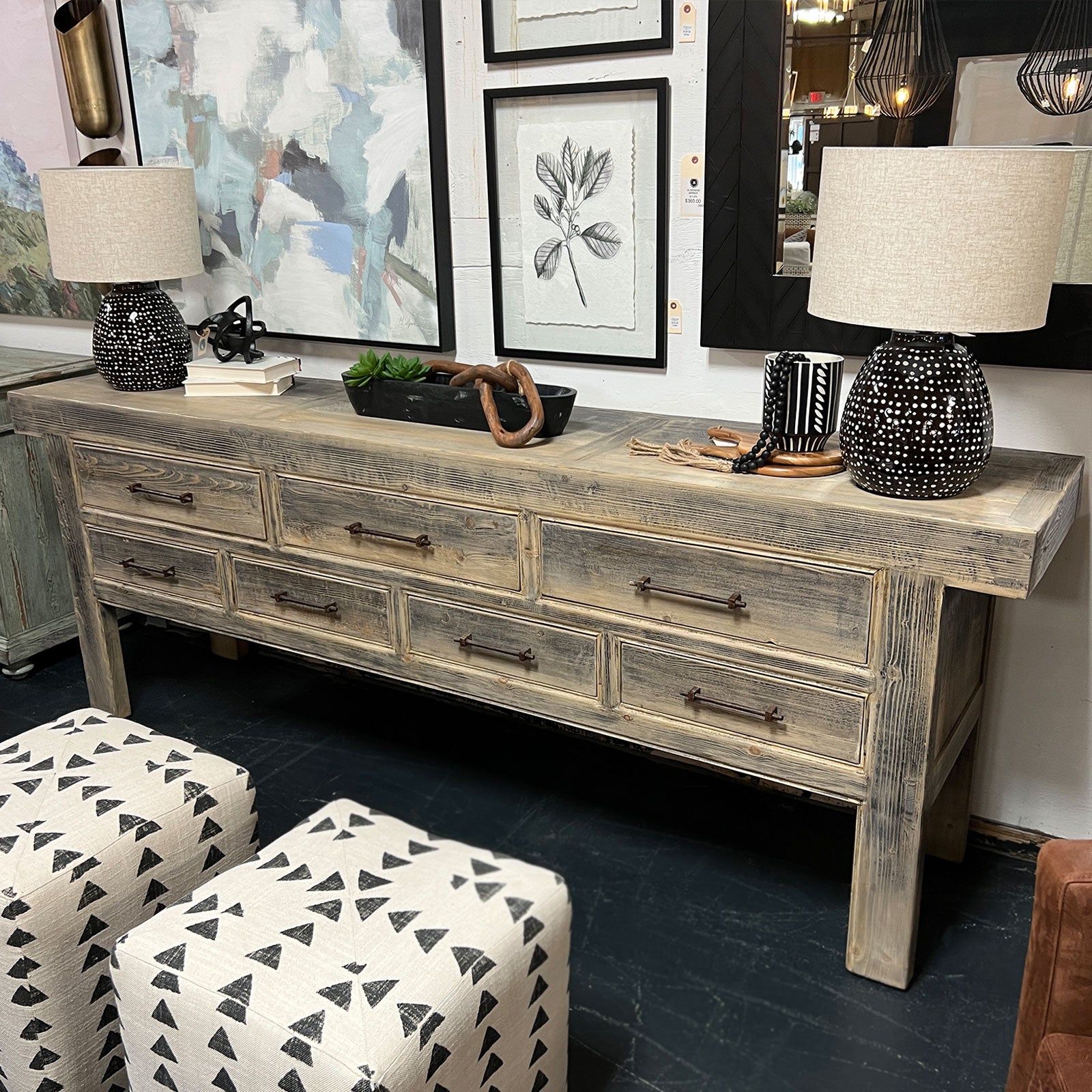 With a charming distressed gray finish, the Latigo console is a beautiful statement piece to add rich, rustic character.