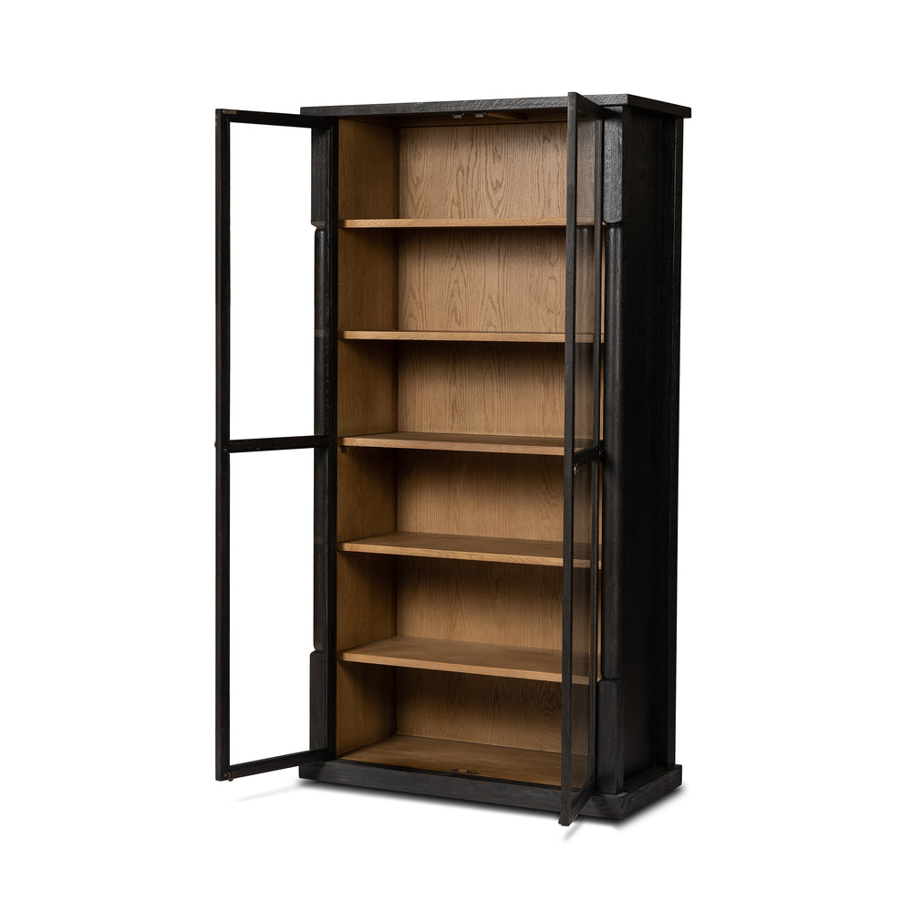 A spacious cabinet, the Noreen, delivers ultimate storage, including six shelves. Partially turned detailing on the front posts adds a design-forward finishing touch.